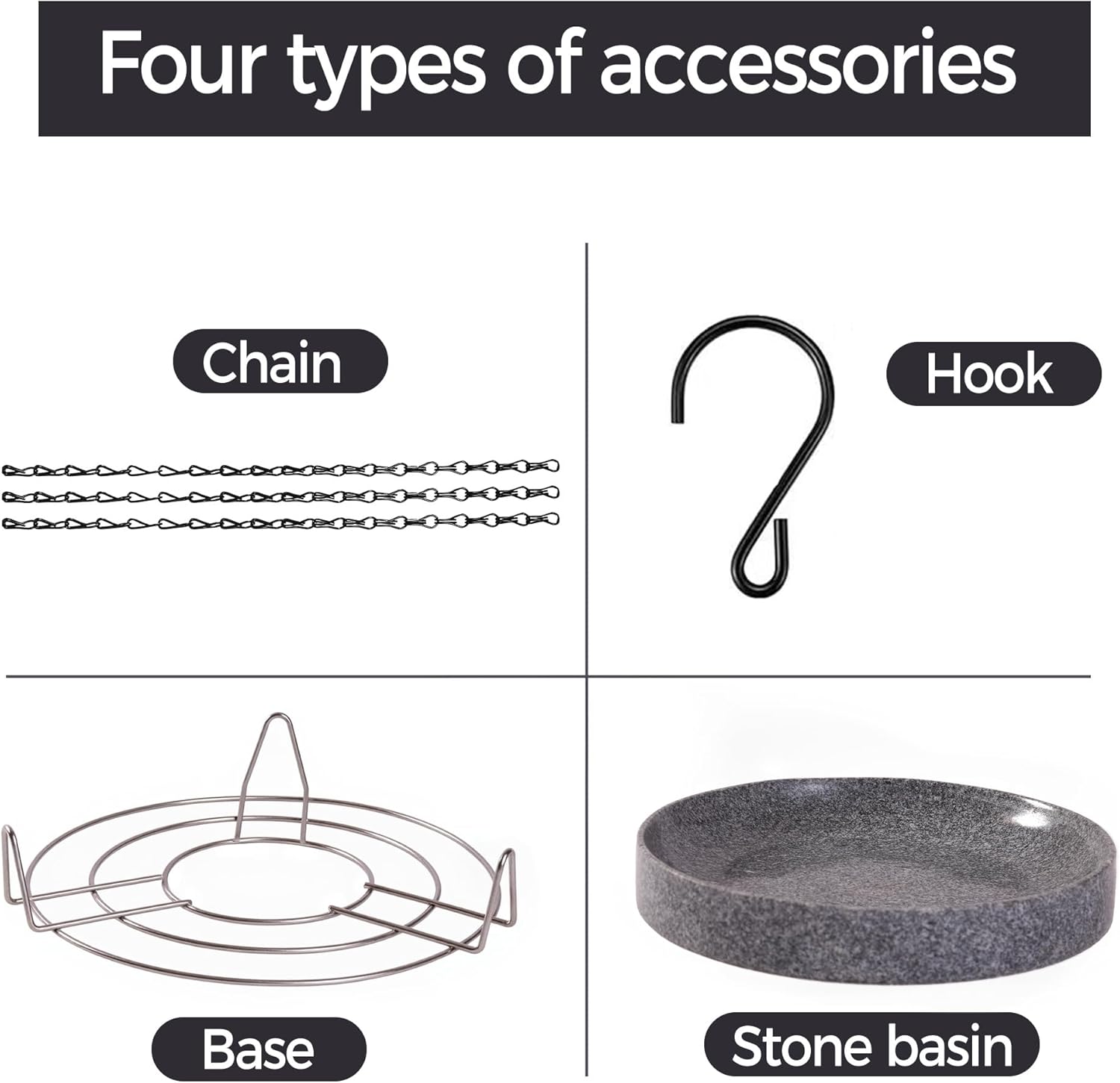 - Unique 2 - in - 1 design : Use it as a hanging bird bath with the chain & hook for tree or patio setups. Or remove the chain and place the stone basin directly on the ground for use as a bird bath and feeder