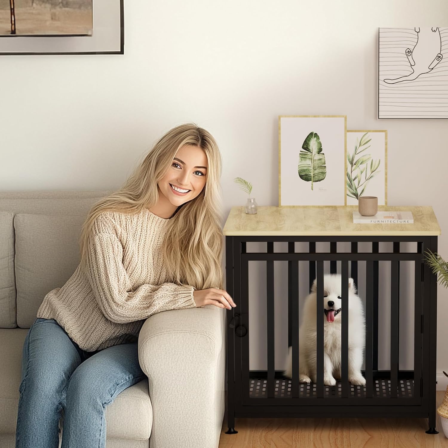 - 【Elegant Furniture Aesthetics】: This dog crate is cleverly designed with a unique furniture design, smooth lines and elegant appearance. The top is specially designed as a practical storage table, which can easily store books, toys, pet supplies or daily small items. Easy to take and put, cleverly combining home aesthetics with practical functions.