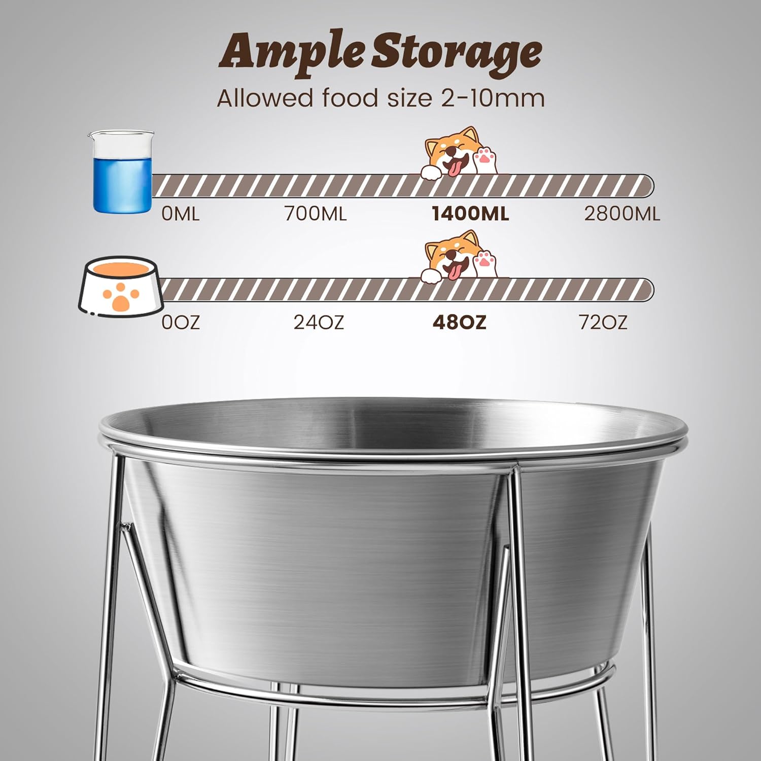 - Stable & Elevated Design : The 6.3-inch stainless steel stand promotes better posture during meals, reducing strain on your dog’s neck and joints while preventing spills.