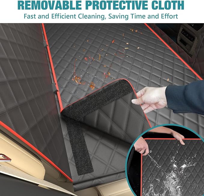 - Removable design for easy cleaning – Featuring 7 layers of padded support, a hard-bottom structure, and breathable fabric, this backseat cover for dogs in car ensures ultimate comfort for your pet. The detachable protective cover allows for quick and efficient cleaning, saving you time and effort with easy maintenance.