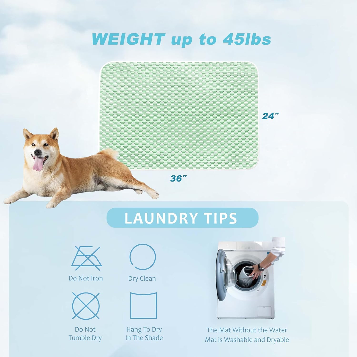 - Safety & Easy Clean: All materials are safe, non-irritating fibers and without chemicals. No water, electricity, or refrigeration, without water leakage, electric shock problem.The most important is our mat is easy to clean, just throw it to the washing machine. Release life!