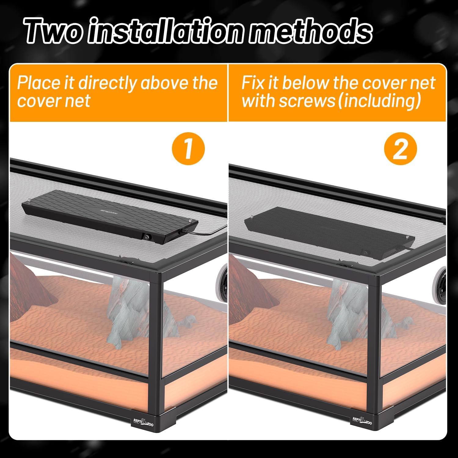 - 【Optimized Mounting & Heat Efficiency】: Securely screw-mounts UNDER the terrarium lid for direct downward warmth, significantly boosting heat utilization compared to freestanding panels. This targeted approach minimizes heat loss and ensures your reptile basks efficiently.