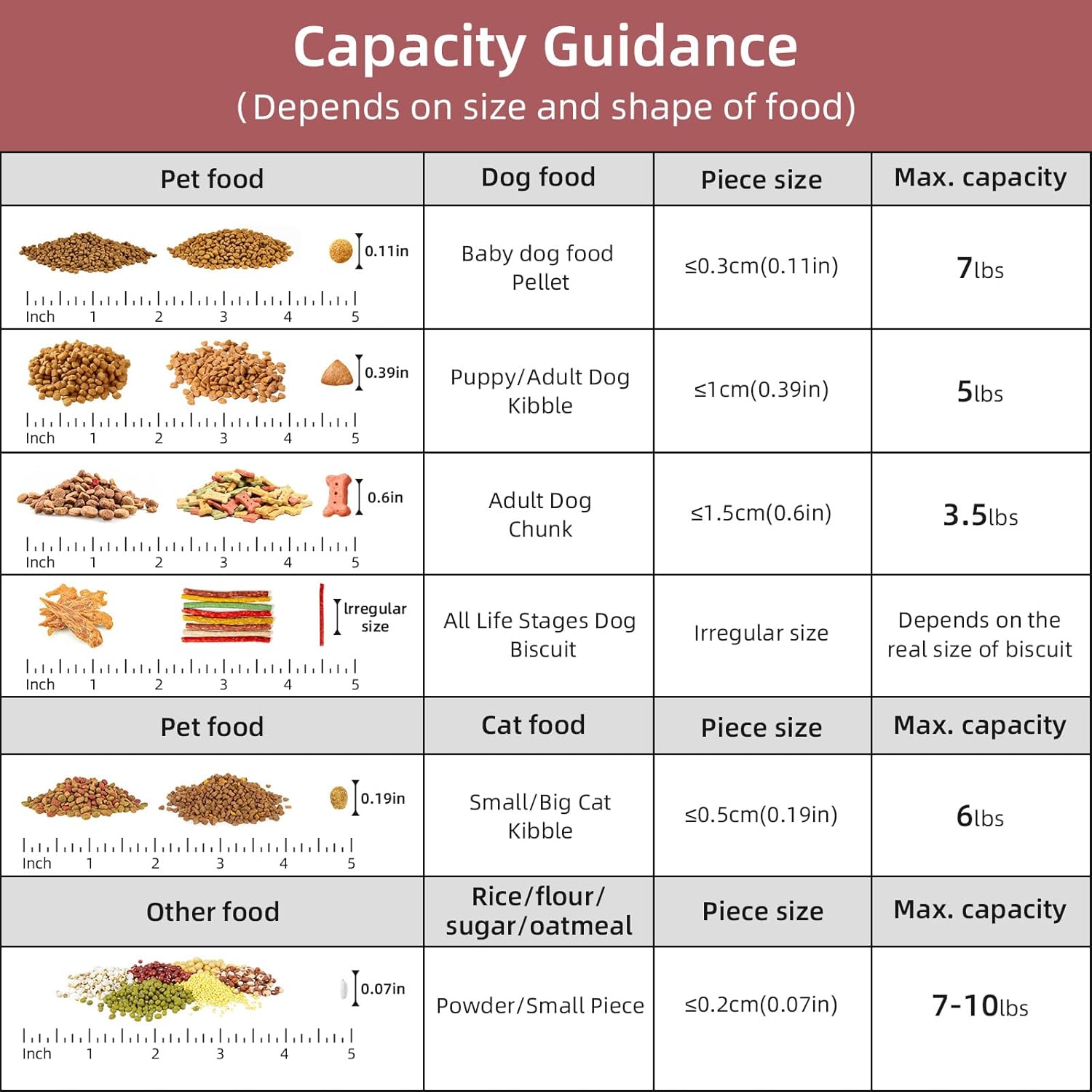 - WHAT YOU GET?:The small dog food bin comes with a 1-pack airtight pet food storage container with a clear measuring cup and an upgraded large spout for easy pouring of pet food at any time. This dog food storage containers can be a gift The perfect gift for any home.