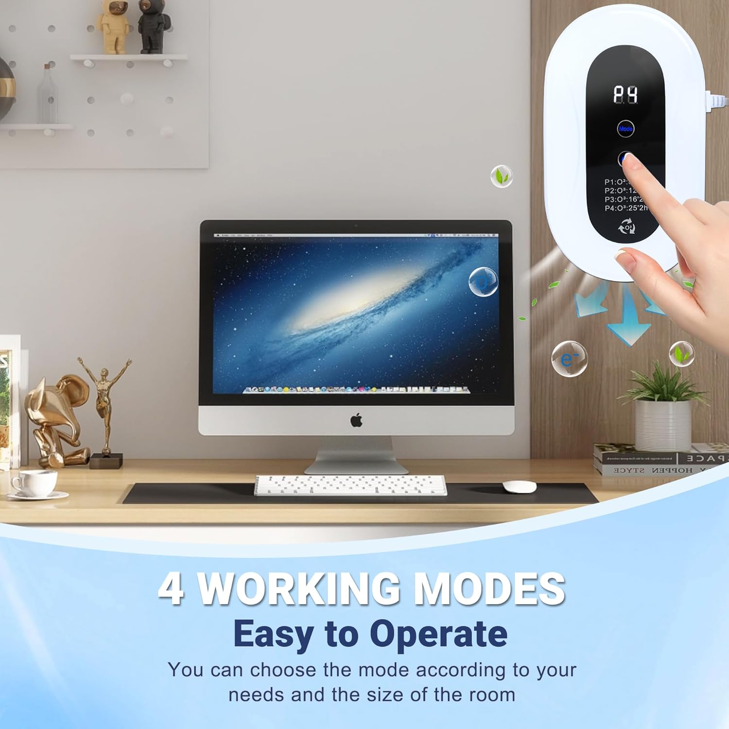 - Quick deodorization:This Plug in air purifier features is an active oxygen output of 150mg/h. It effectively for bathroom odors, pet smells,and formaldehyde from new house decorations.