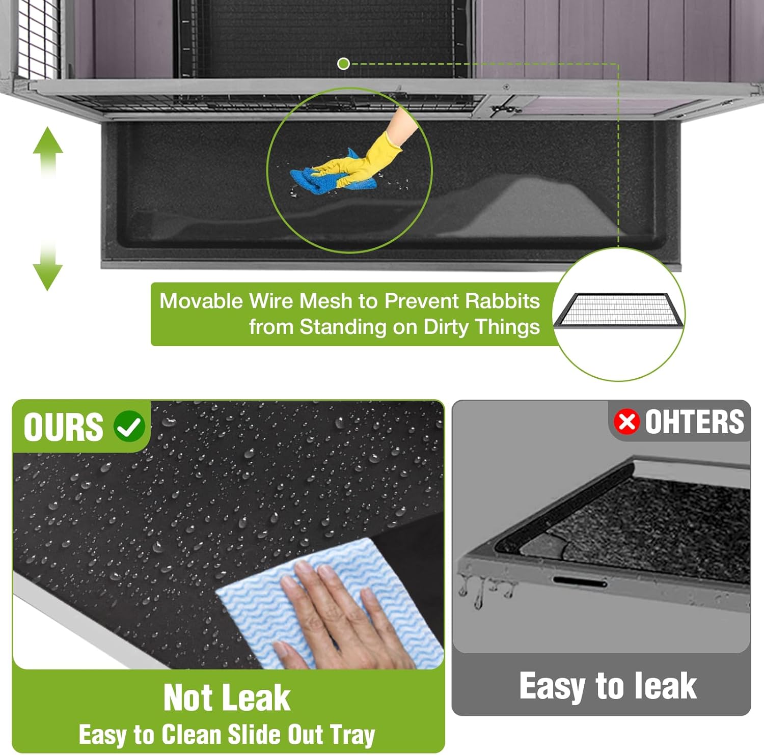 - EASY CLEANING: Guinea pig cage features a removable wire mesh and leak-resistant tray, this cage simplifies waste management. The slide-out tray design enables quick cleanup, maintaining a hygienic environment for your pets with minimal effort.