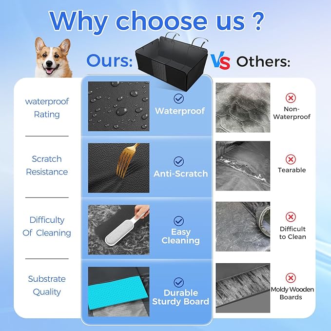 - [High quality materials]: The car dog hammock is made of durable Oxford fabric and designed to be 100% waterproof and scratch resistant,helping to protect the car seat from pet damage.High quality hard and thick bottom can provide 400 pound support