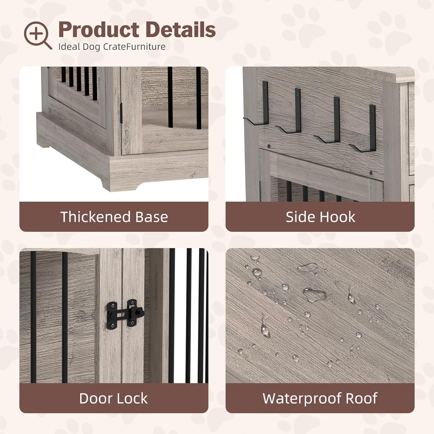 - Tons of Storage Space-Not just a kennel! Enjoy a sturdy top shelf that holds 150-200 lbs ideal for plants, photos, or decor. Two spacious drawers store food, toys, or treats, while side hooks keep leashes, collars, and pet essentials organized