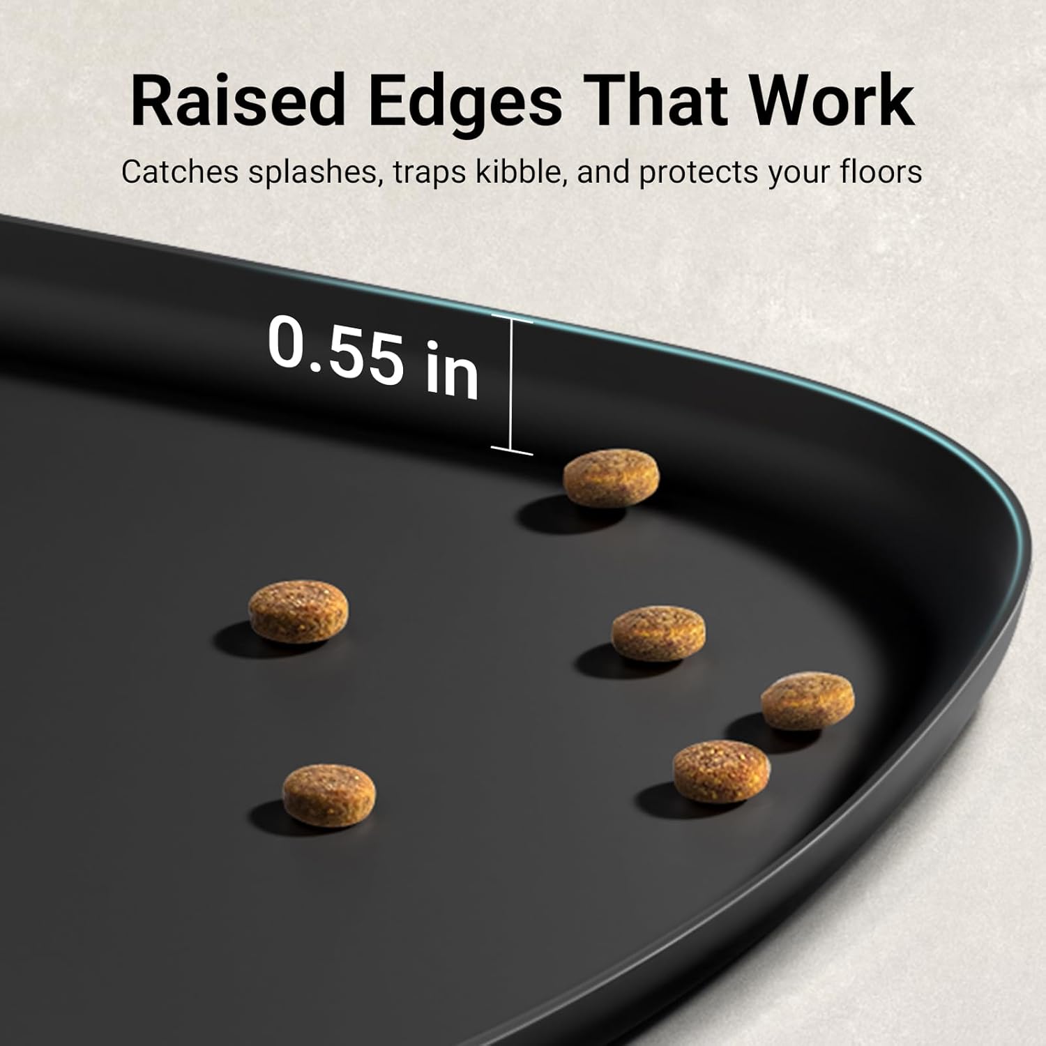 - Stop Messes, Start Happy Mealtimes: Designed with a 0.55 inch high rim around all sides, the pet food mat keeps spills, water splashes, and food crumbs securely contained. The dog water mat keeps floors dry and giving messy eaters freedom to enjoy food