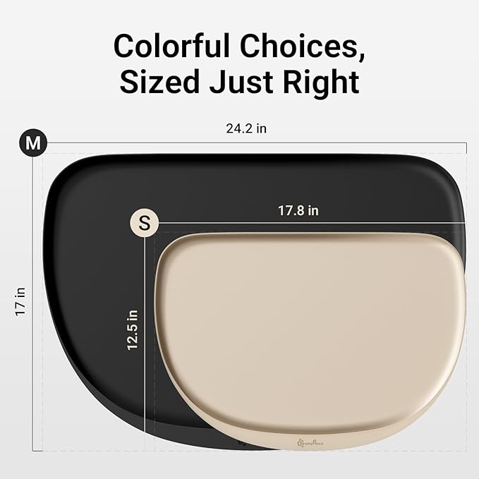 - Available in Two Sizes: Choose from two size options to suit your space and feeding setup. Sized to fit DownyPaws fountains or dog water bowl perfectly, while also compatible with most pet food and water bowls or feeder. (S: 17.8×12.5×0.6 in, M: 24.2×17×0.8 in)