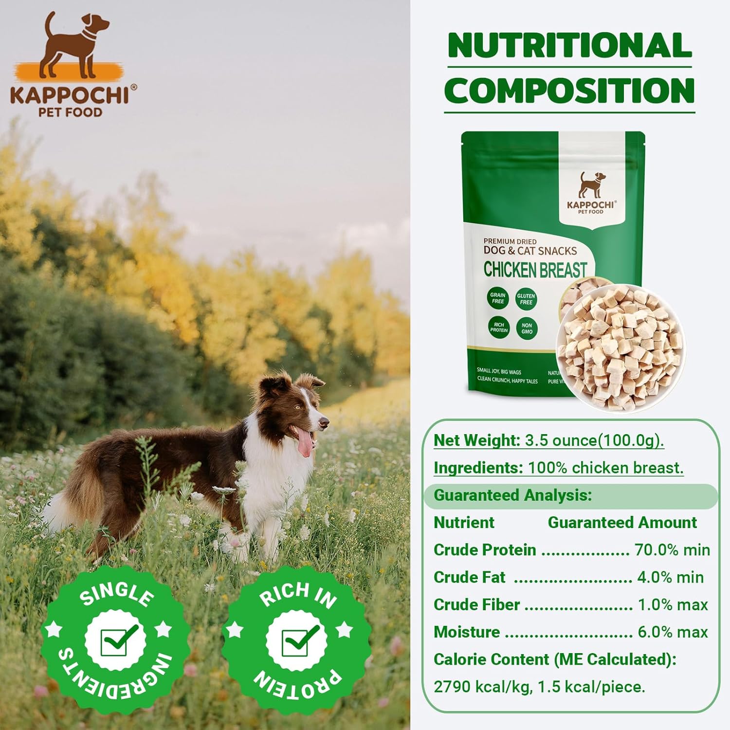 - SINGLE-INGREDIENT CHICKEN BREAST TREATS: Made with premium chicken breast with no preservatives, fillers, or grains. A simple, pure snack perfect for sensitive pets.