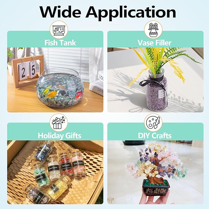 - Wide Application: These amethyst crystal chips are not only suitable for home decoration, but can also be given as a birthday or Christmas gift to family and friends. Perfect for decorating aquariums, succulent plants, vases and DIY handcraft projects