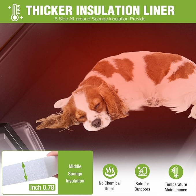 - INSULATED COMFORT FOR PETS: Keep your pet cozy with our Dog House featuring a 0.79" thick insulation lining. This provides exceptional warmth and insulation, creating a snuggle-worthy haven for your furry friend