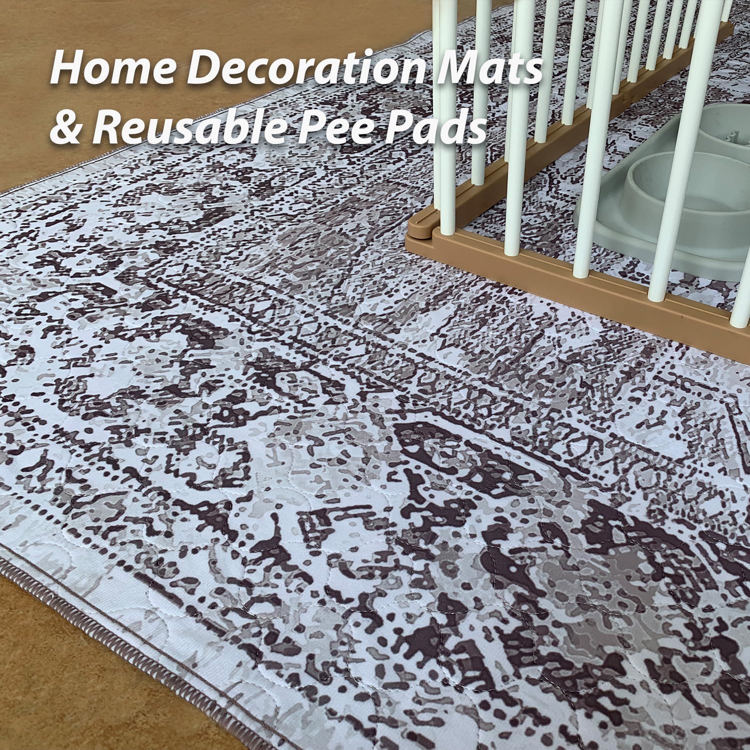nunubaby 4PACK Washable Pee Pads for Dogs, Stylish, Non-Slip and Leak-Proof Pee Pads. Reusable Potty Pads for Dogs for Crates and Floors.(Brown/Geo, 24" x48")