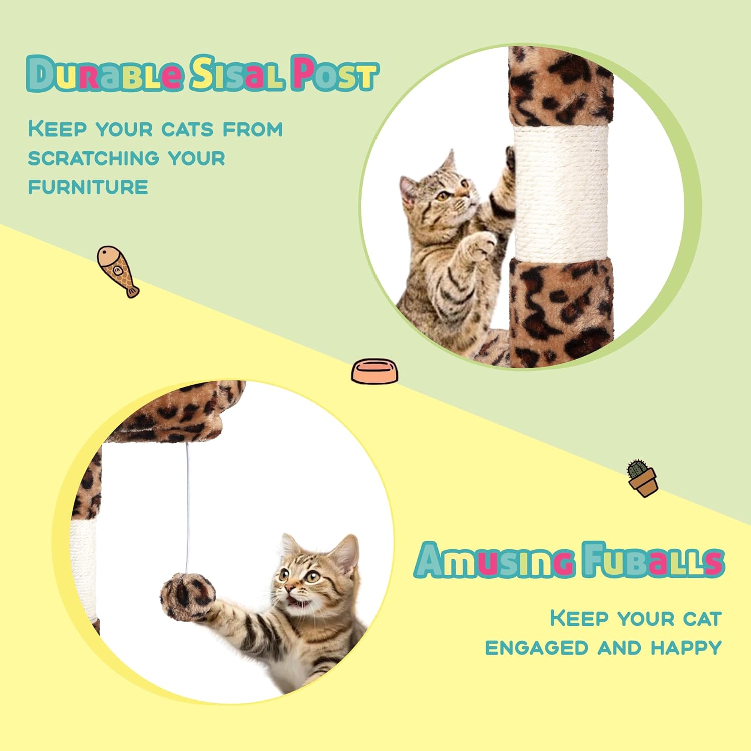 - Premium Build: Designed with durable, CARB P2-compliant particle board and cozy plush fabric, and reinforced with sisal-wrapped posts to let your feline friends scratch away without sacrificing your furniture