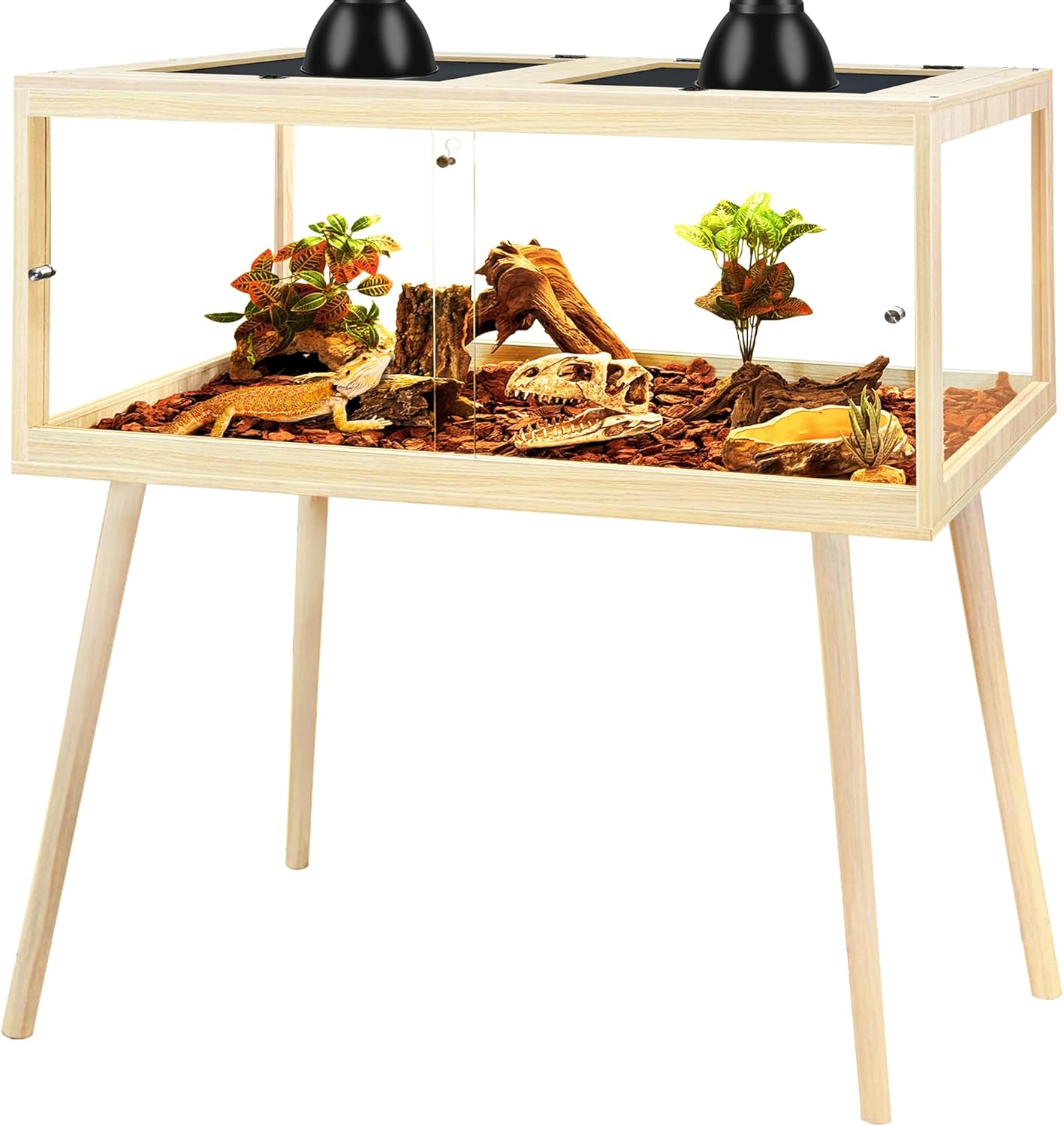 - 【Spacious Elevated Design】Available in 24", 30", 36", and 48" lengths with a raised 4-legs design(please refer to pic2 for exact size), this habitat offers ample room for reptiles to explore, bask, and hide. Refer to the second image for detailed sizing to select the best fit for your pet. The bottom includes an acrylic liner that makes cleaning easier while keeping the interior tidy.