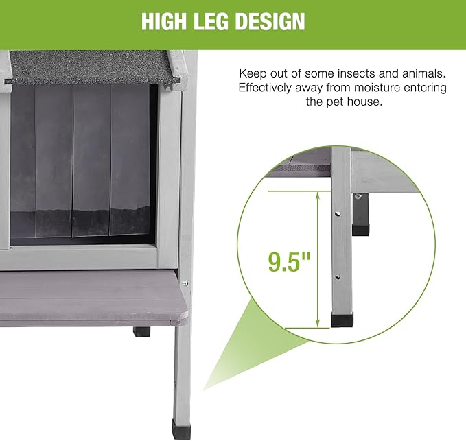 - WEATHERPROOF CAT SHELTER: Crafted from natural fir wood with an asphalt roof and protective foot covers, this cat house withstands rain, snow, and wind. The slanted asphalt roof allows easy opening for cleaning, while the elevated base prevents water accumulation.