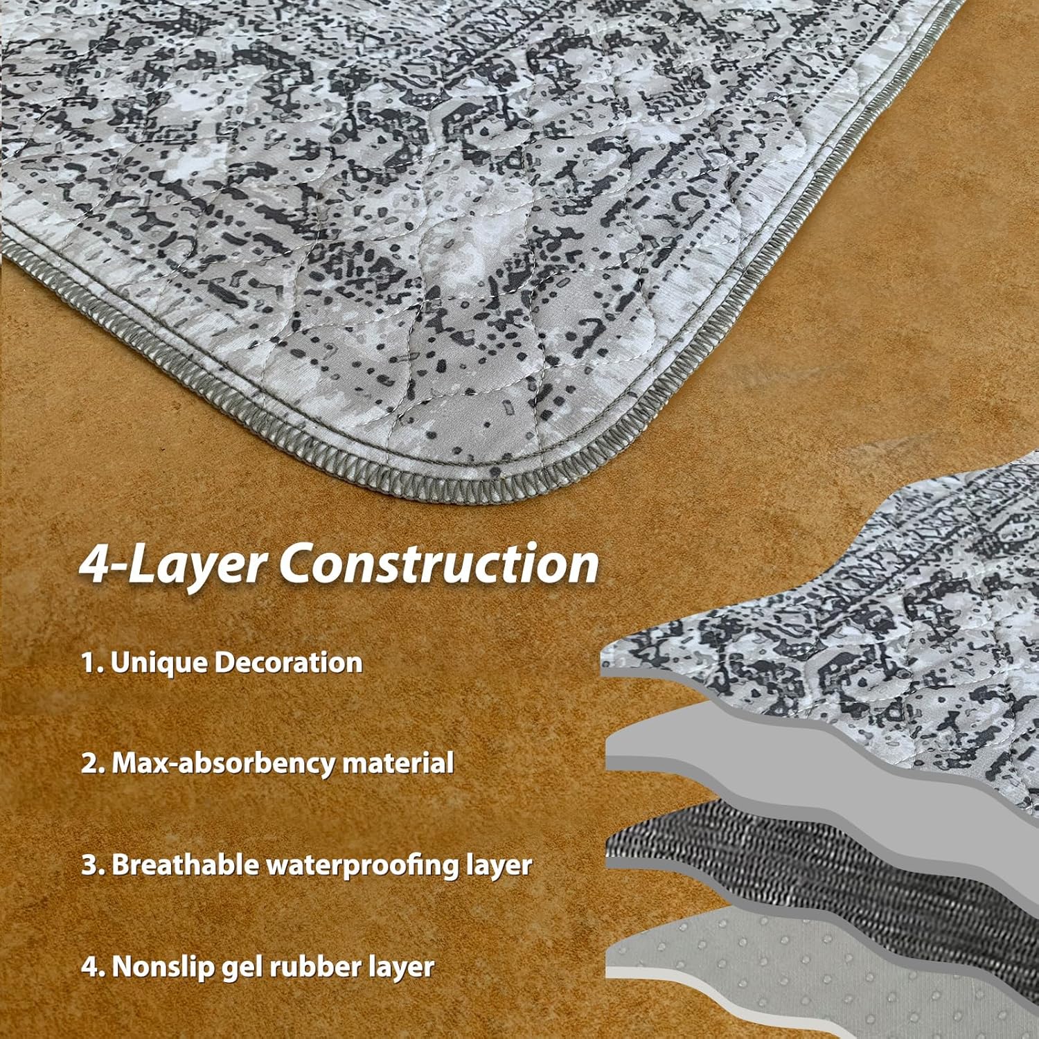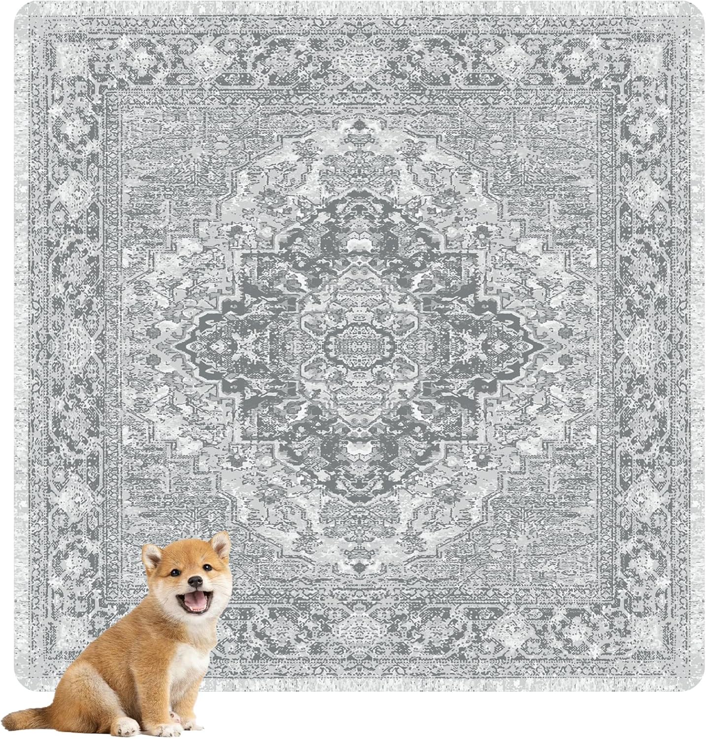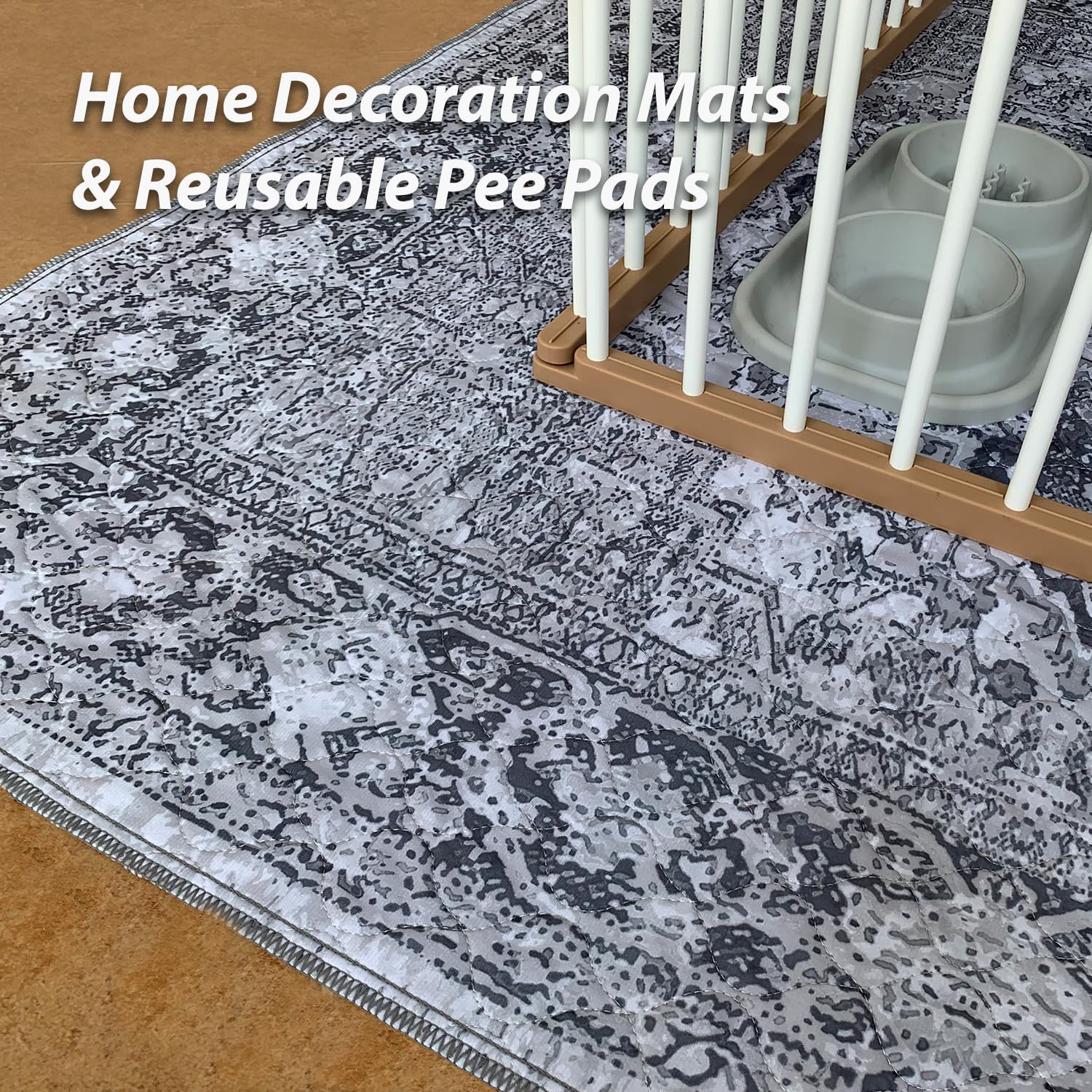 nunubaby Washable Pee Pads for Dogs, Stylish, Non-Slip and Leak-Proof Pee Pads. Reusable Potty Pads for Dogs for Crates and Floors.(Gray/Geo, 54" x54" )