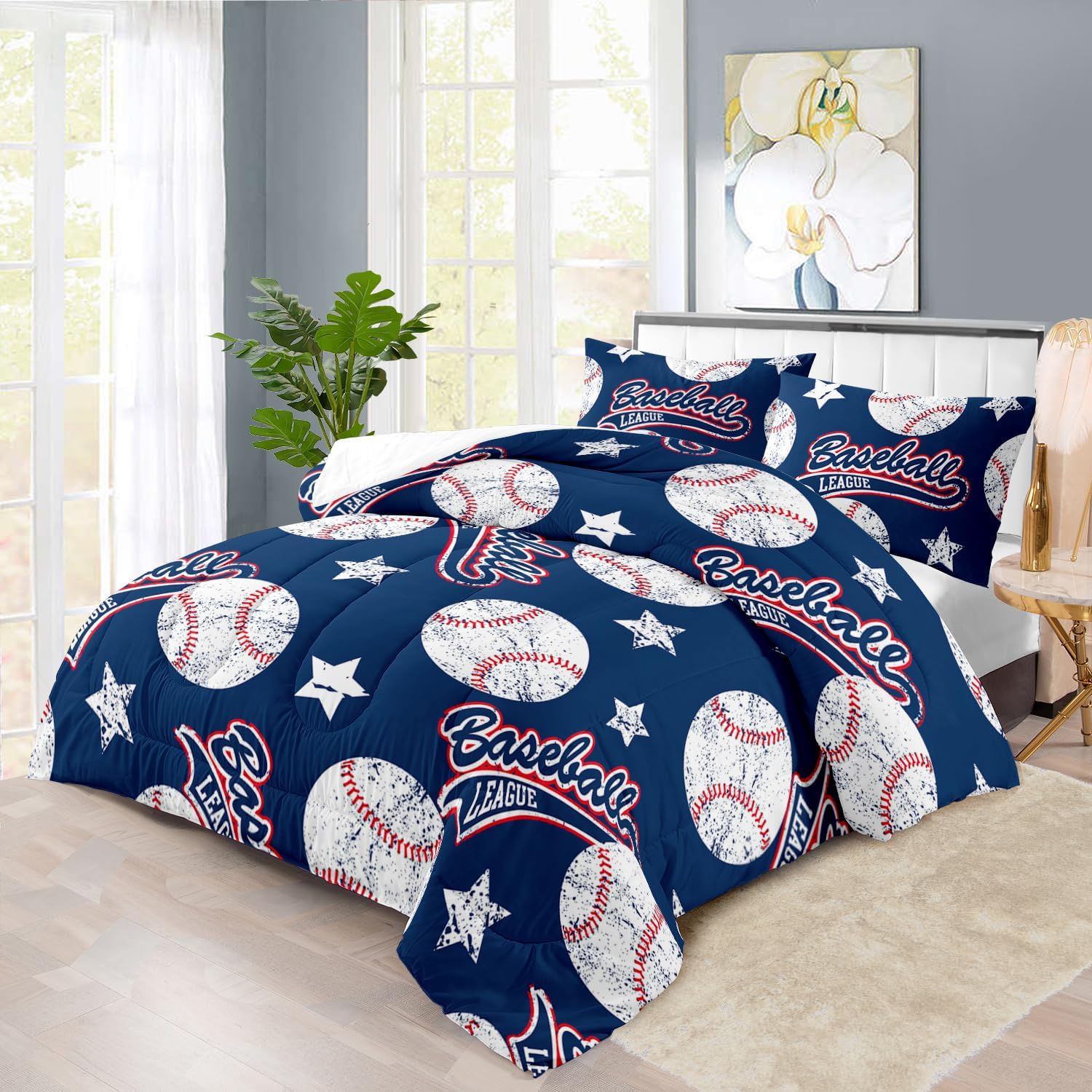 Baseball Comforter Set King,Sports Bedding Sets for Boys,Blue Sports Comforter King Bedroom Decor,Baseball Bedding Teen for All Seasons,Blue Quilt Kids Bedroom Decor