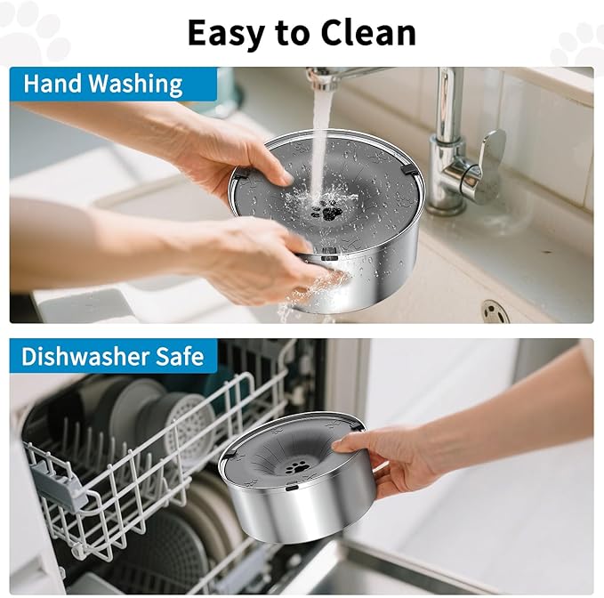 - No-Spill & Anti-Splash Design: The dog water bowl prevents spills and splashes, keeping your floors dry and clean. Ideal for messy drinkers, this no-drip design is perfect for home or travel use.