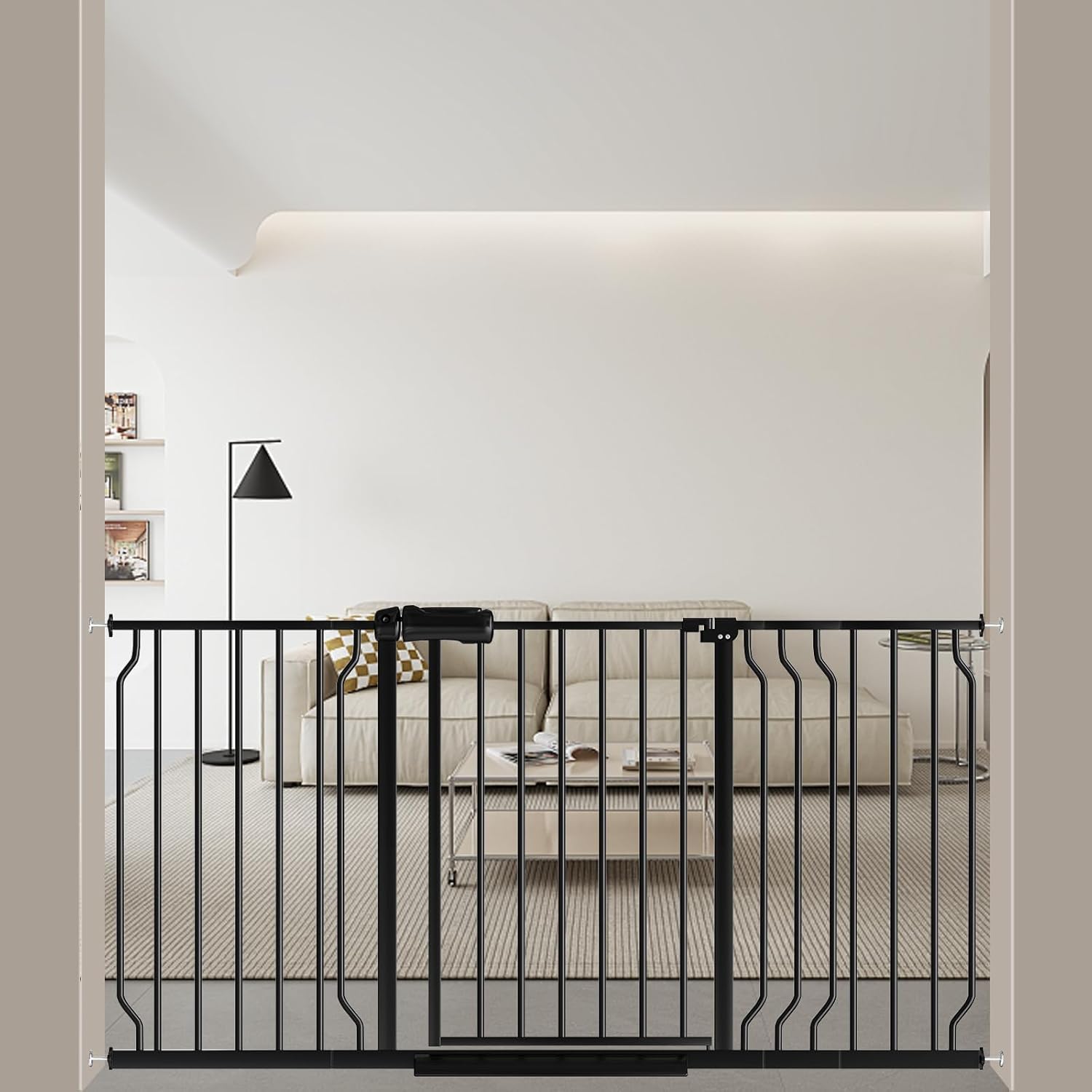 - 【Safe for Baby】Your curious crawlers will be "blocked" by the safety extra wide baby gate because we design the double-lock safety release which makes it difficult for toddlers to open the gate ,but adults can operate with one hand and pass quickly.