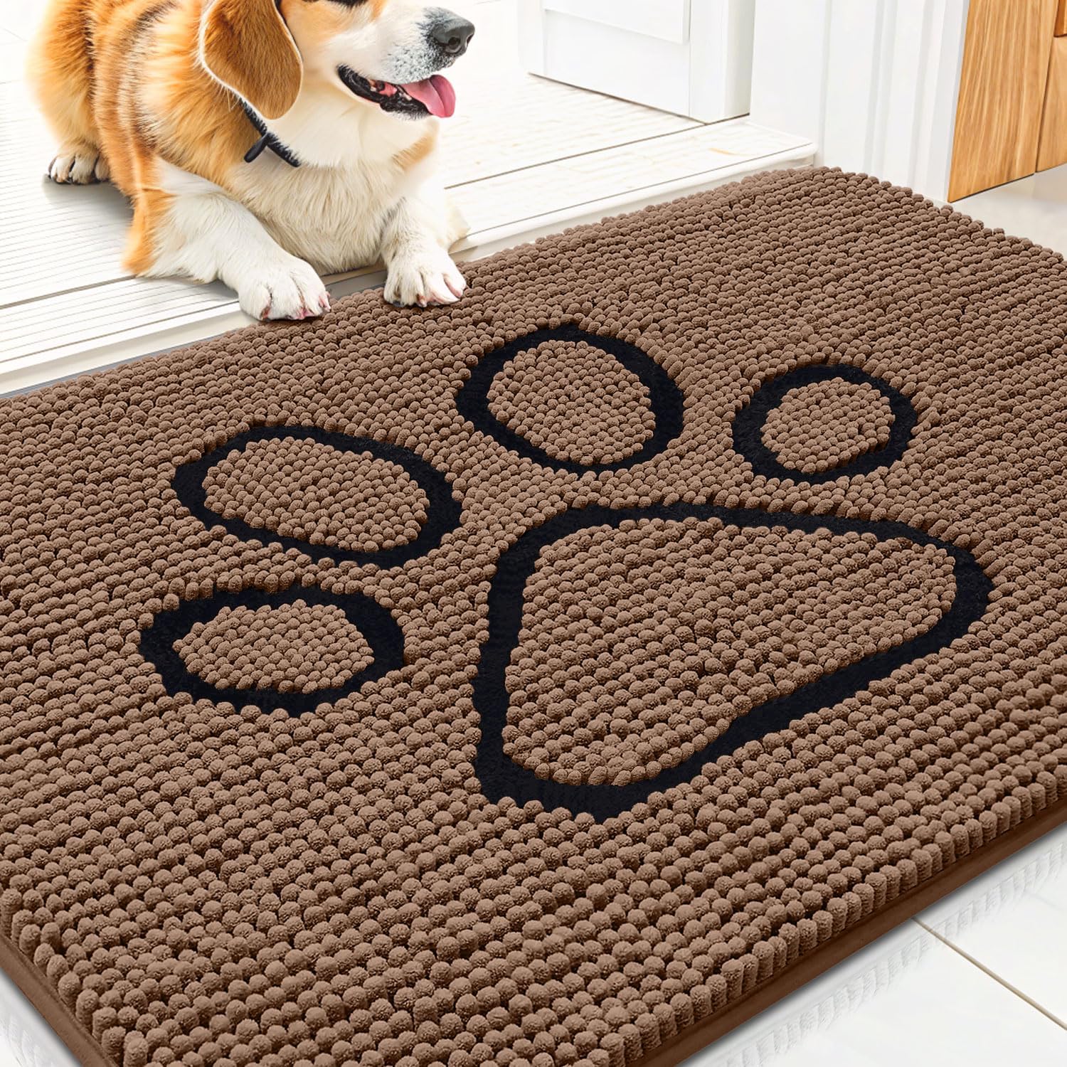 Smiry Dog Door Mat for Muddy Paws, Absorbent Dirt Trapper Non Slip Quick Dry Washable Chenille Mat for Mud Dogs, Entry Rug for Indoor and Outdoor (30x20 Inches, Coffee)