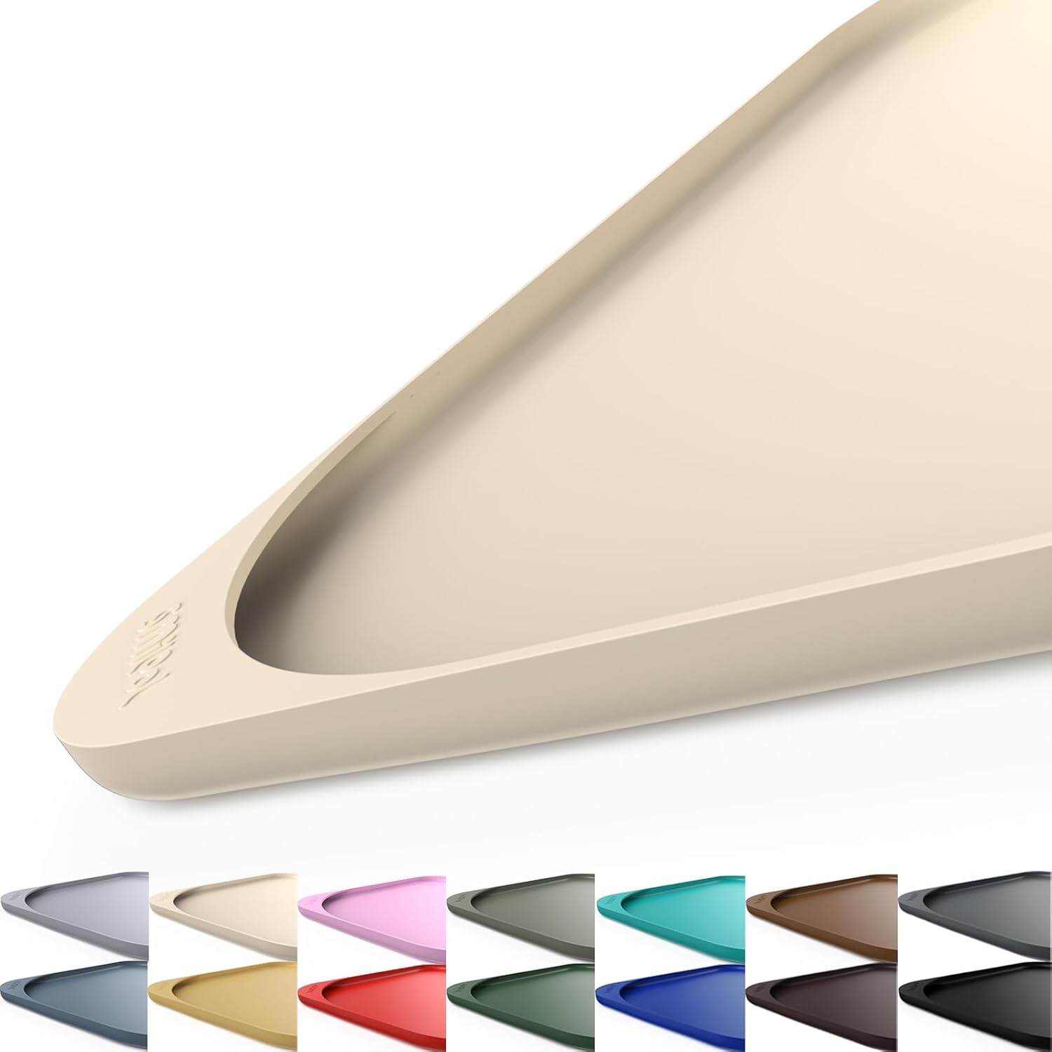 Silicone Pet Feeding Mat with Raised Edge & Residue Collection Pocket for Food and Water, Dog Bowl Mats, Cat Bowls Placemat with High Lip for Floor Waterproof, 19 x 12 x 0.7 White Sand