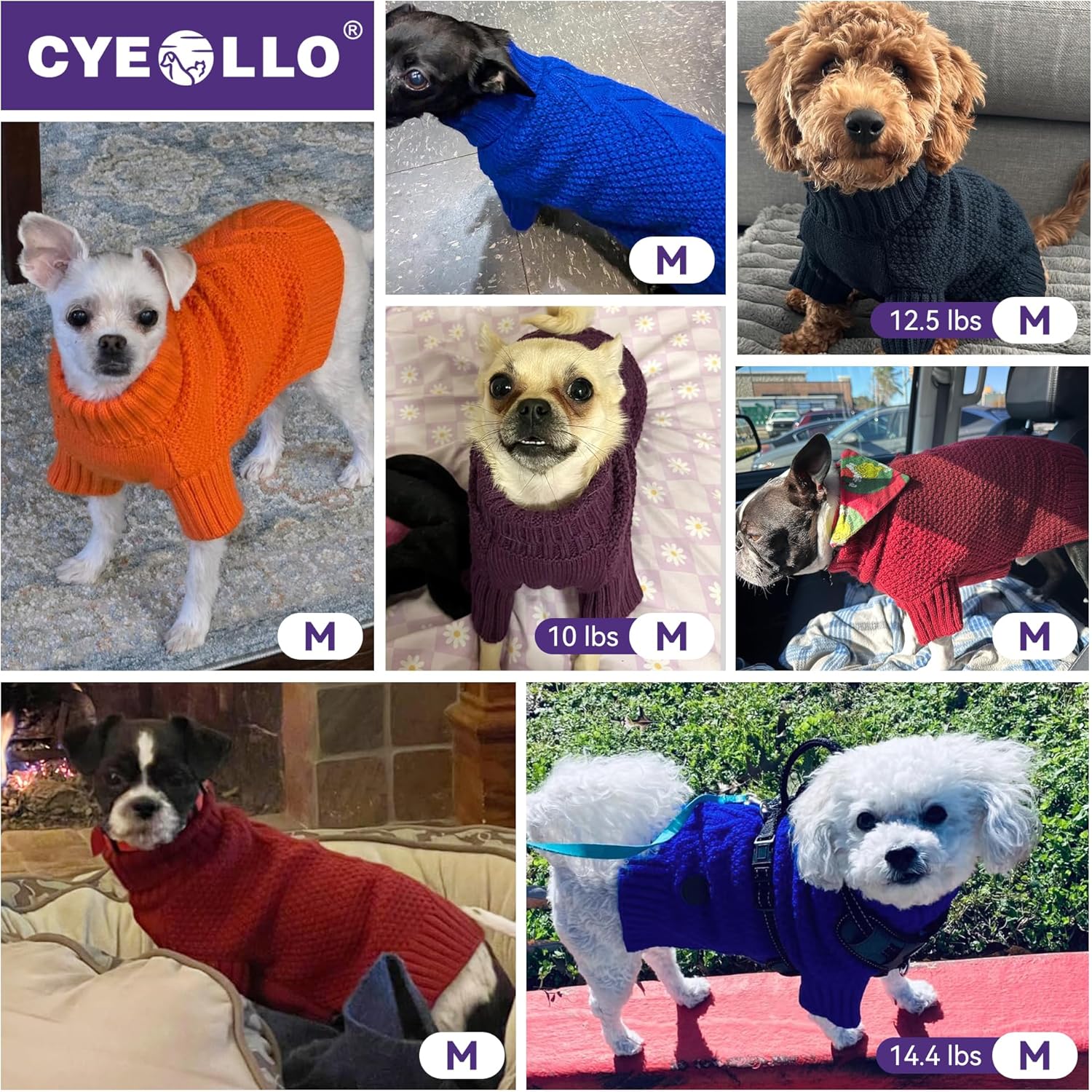 - About Sizes: cyeollo sweaters for dogs recommend for small, medium, and large sized dogs male. Getting the right size based on cyeollo size chart, different breeds of dogs have unique body shapes. If between sizes, please choose the larger one