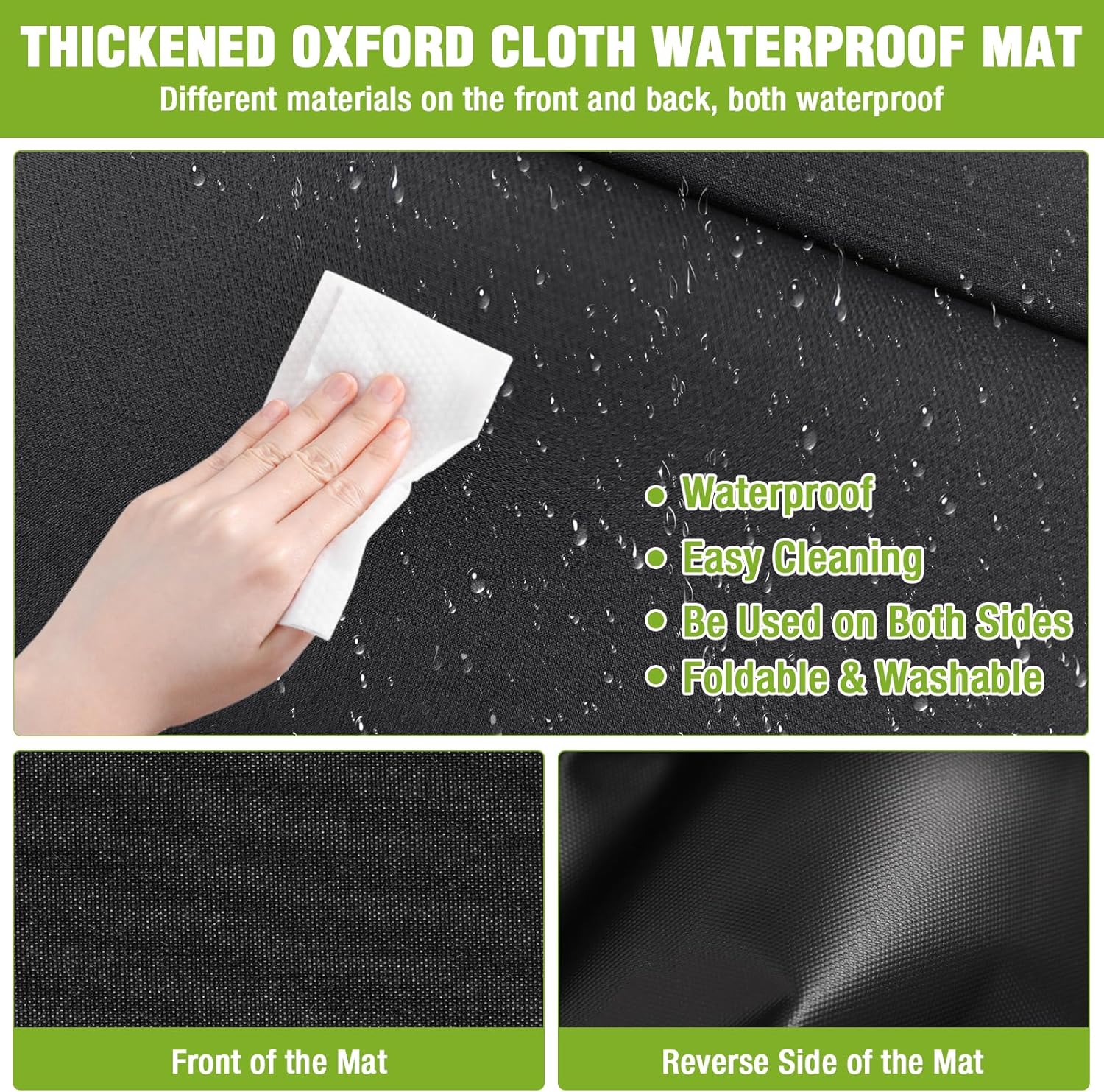 - Thickened Oxford Cloth Water-Resistant Mat Features different water-resistant materials on both sides, easy to clean, usable on either side, foldable, and washable for long-lasting convenience.