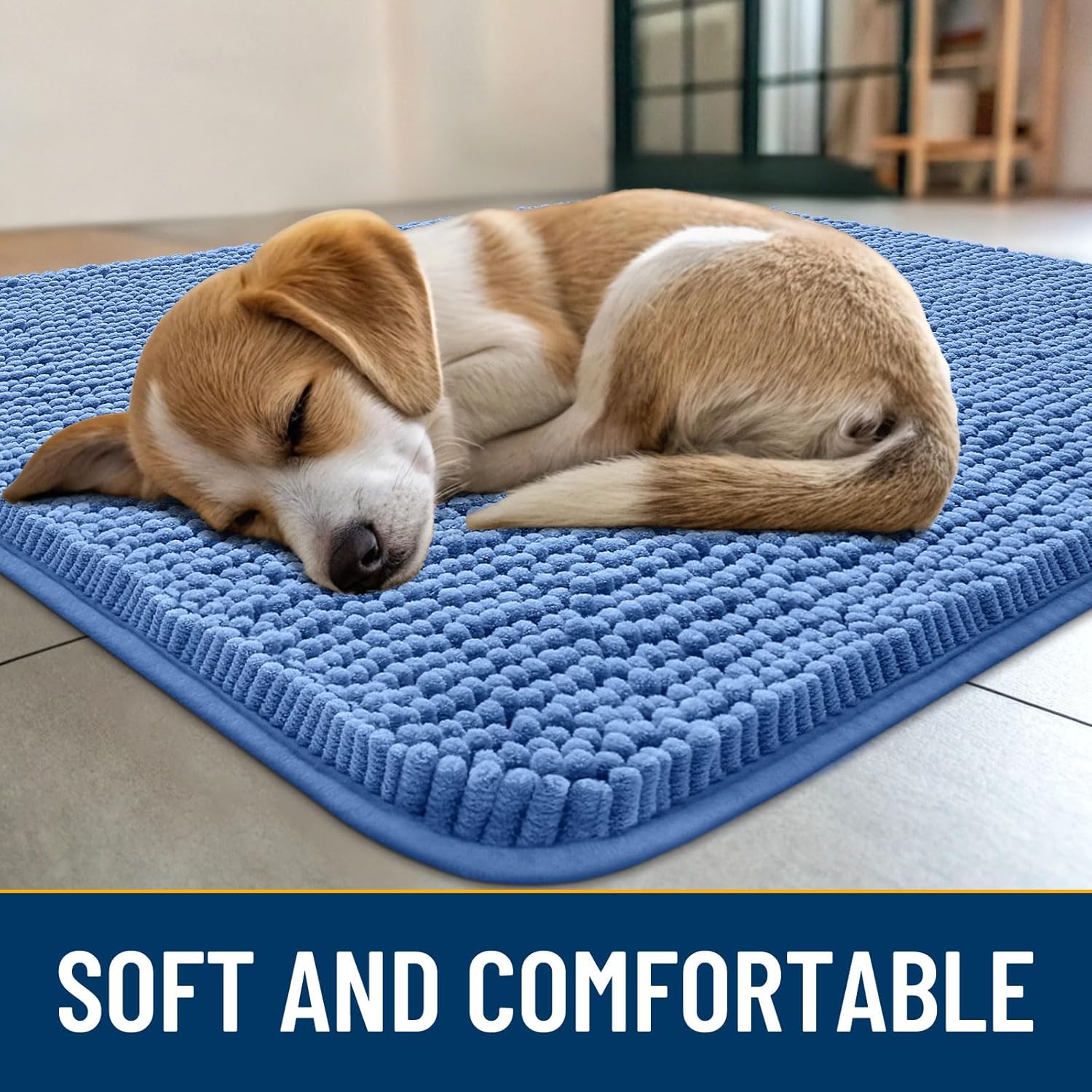 Smiry Dog Door Mat for Muddy Paws 48x30, Absorbs Moisture and Dirt Doormat, Non-Slip Washable Quick Dry Chenille Front Door Mat Indoor Entrance, Entryway Carpet for Inside Floor, Cornflower Blue