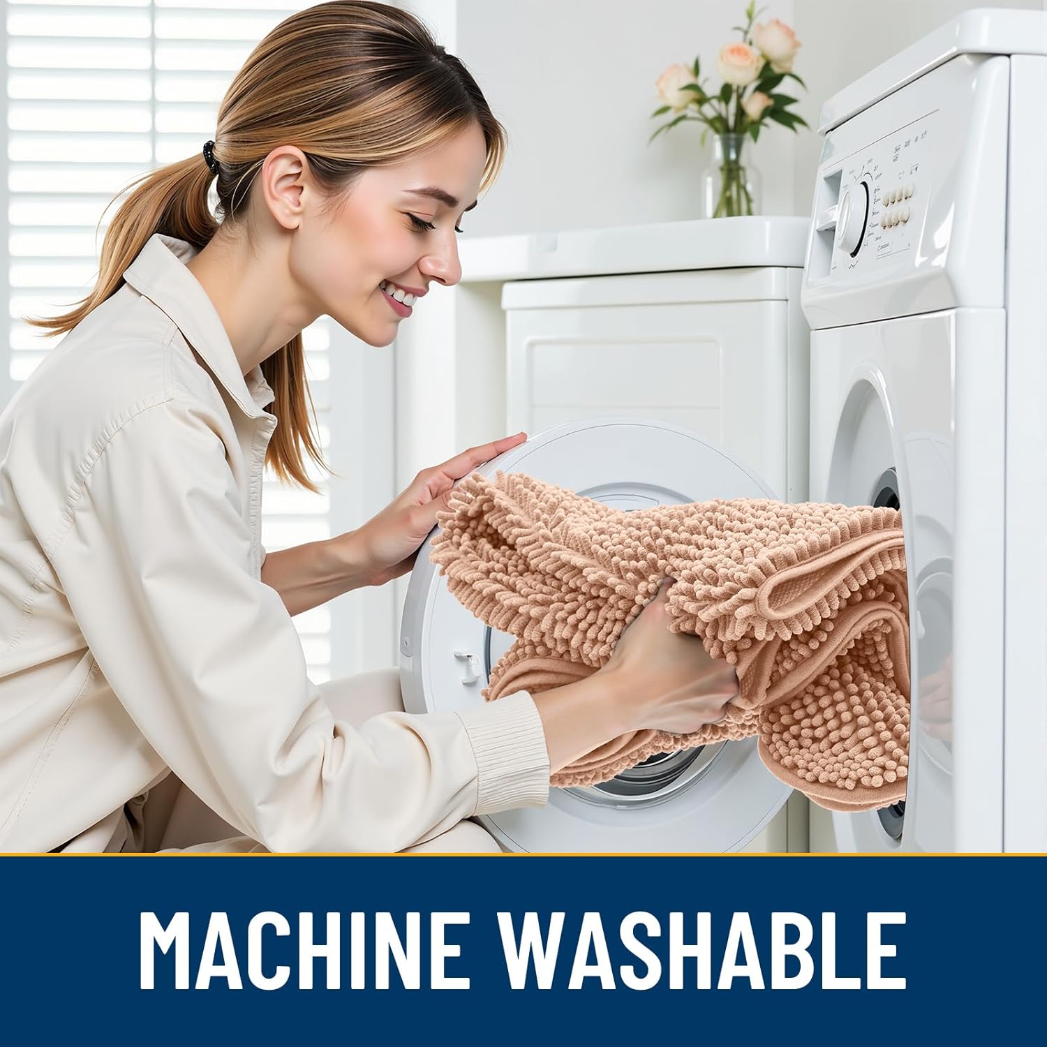 - [Easy Clean and Care] Our indoor door mat for muddy paws is also easy to clean and maintain. Simply shake off the dust or machine wash it for a deeper clean. It dries quickly, so you can be sure it's ready to use again in a short time. Please wash with cold water and dry naturally or at low temperature.
