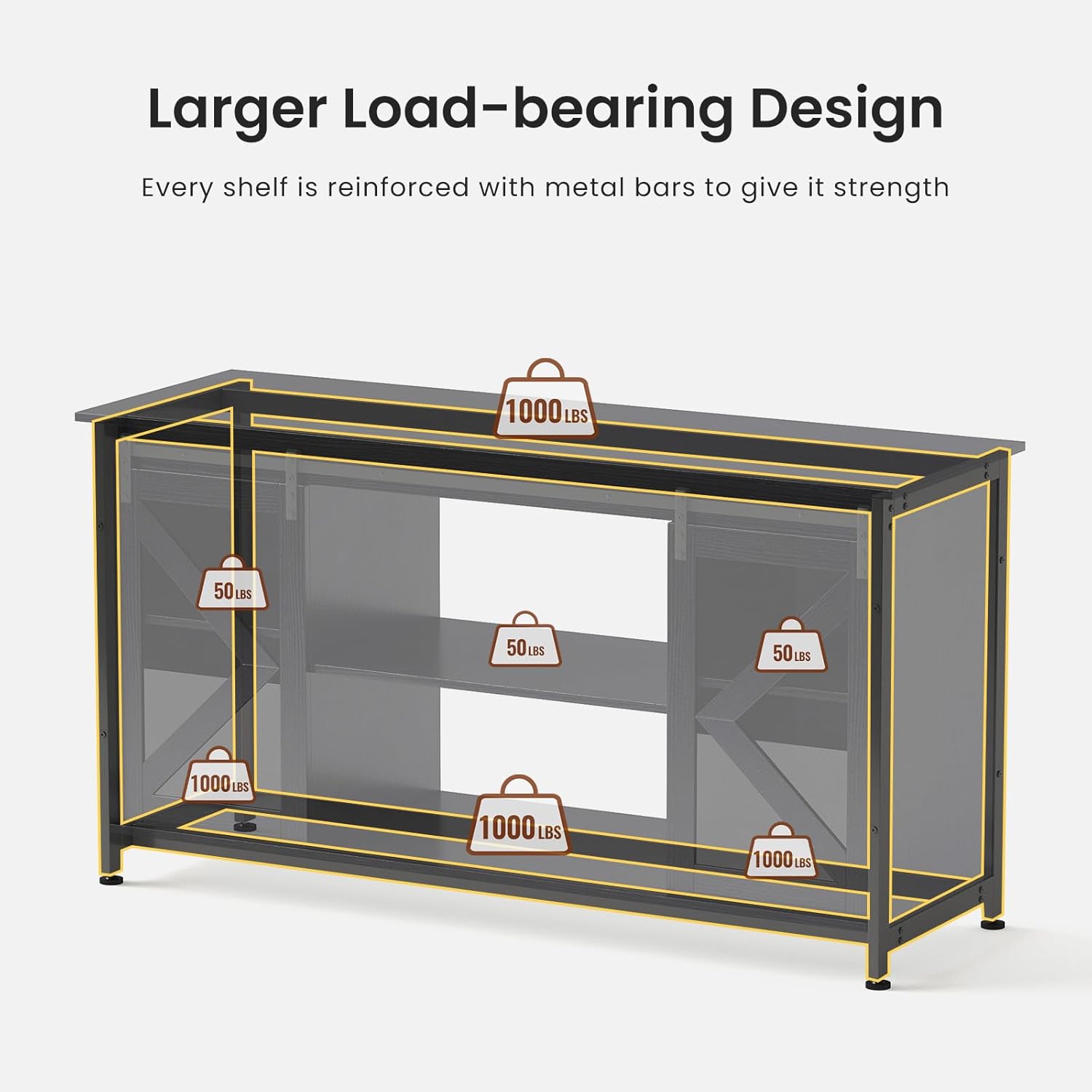 - Heavy-Duty 1000LB Capacity Construction: Featuring a reinforced 1.57" thick steel frame with particleboard/MDF panels, this stand supports up to 1000 lbs evenly distributed weight (tabletop and bottom shelf). Middle shelf holds 100 lbs for accessories.