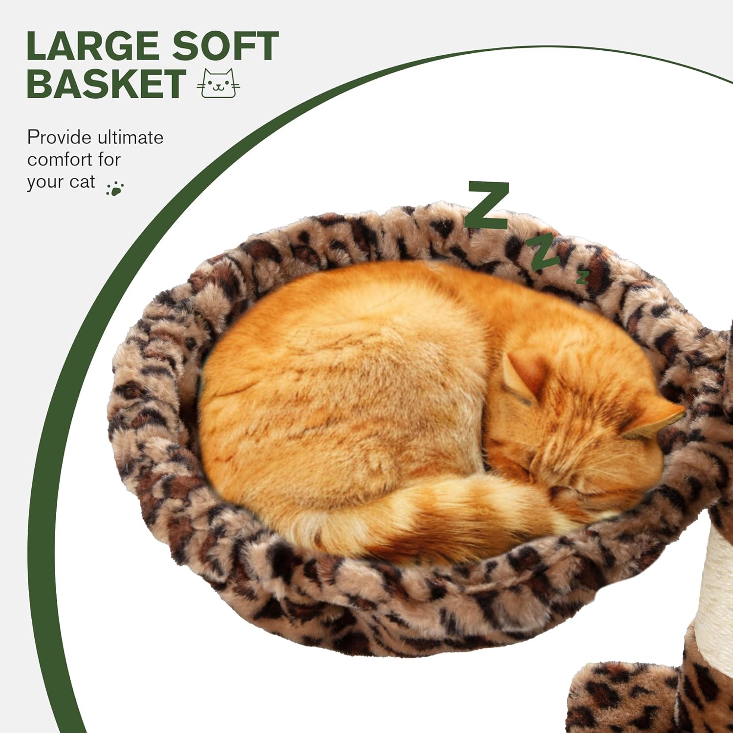 MUTICOR 66 Inches Multi-Level Large Cat Tree Tower for Indoor Big Feline/Cozy Plush Perches/Condo/Sisal Scratching Posts/Hammock and Baskets/Activity Center Play House/Wide Base/Leopard Print