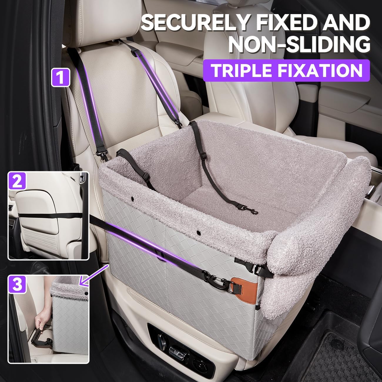 - 【Securely fixed】The dog car seats for small dogs uses all three fixings at the same time and is very securely installed and will not slide.
