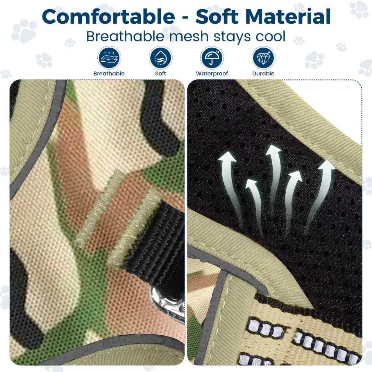- MAXIMIZE COMFORT: 100% polyester + oxford fabric, durable and waterproof. Lightweight mesh lining and soft padding on the chest and abdomen for good load distribution and injury prevention. Protects your pet while offering maximum comfort and long-term use. Breathable air mesh allows the dog from sultry after activity.