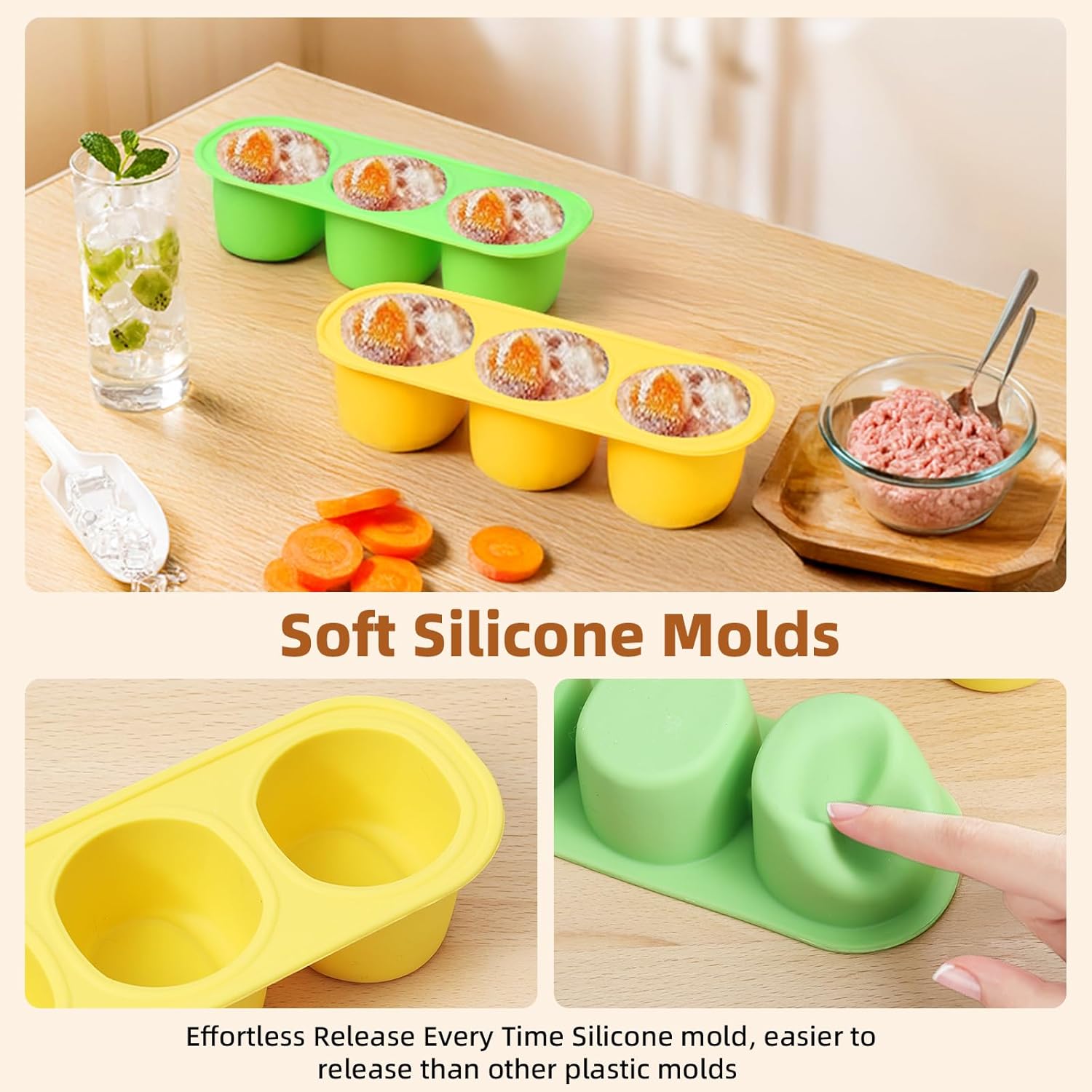 - Double Silicone Molds – Freeze 6 Snacks at Once: Each toy comes with two silicone treat molds (6 cavities in total), allowing you to prepare more frozen snacks at once. Perfect for busy owners who want to extend playtime. This feature makes it both a dog puzzle toy and treat dispensing dog toys, as well as one of the best dog enrichment toys for daily use. Turn it into dog puzzles for smart dogs with frozen treats for added stimulation.