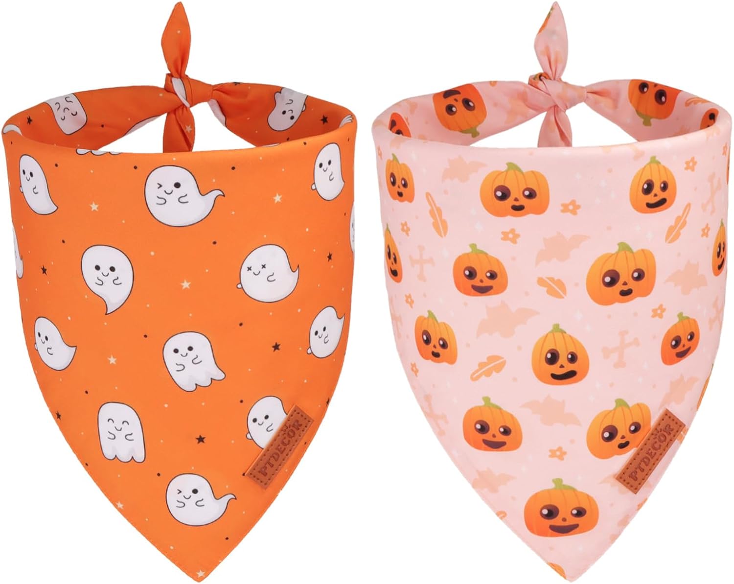PTDECOR Halloween Dog Bandana, Cute Ghost Pumpkin Design Reversible Holiday Pet Scarf, Adjustable Orange Yellow Halloween Bandanas for Medium Large Dogs Pets (Large)