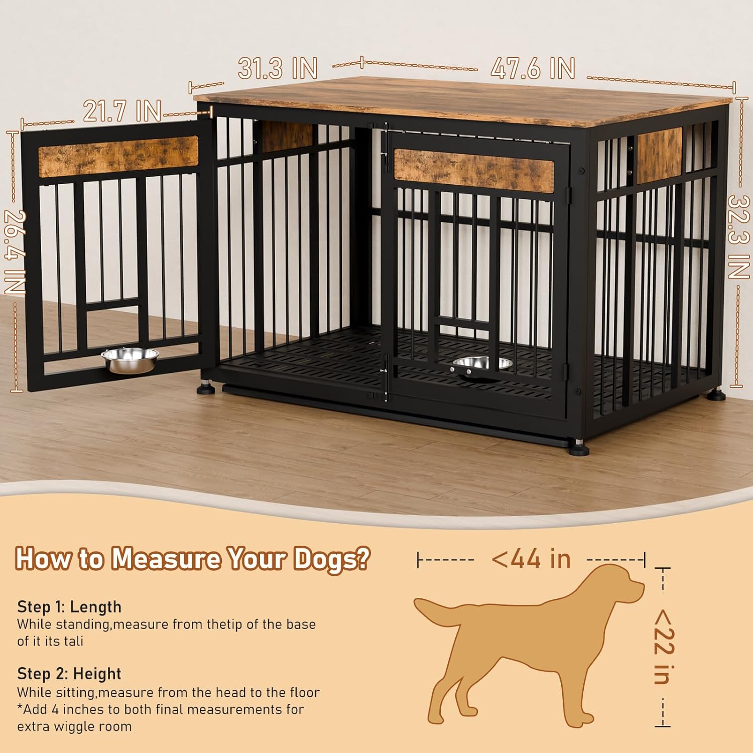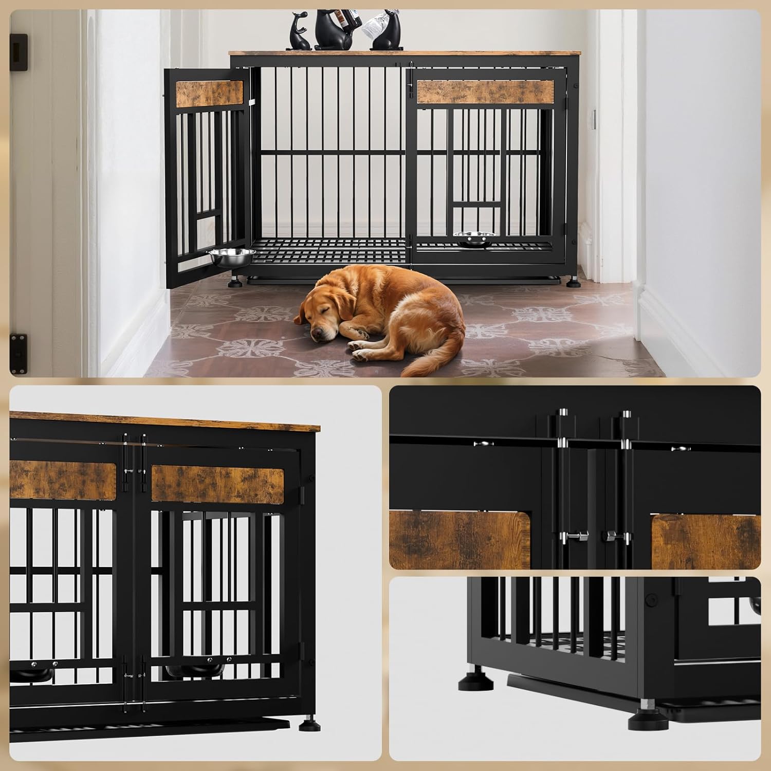 - Heavy-Duty & Safe Construction: Dog cage furniture features reinforced metal frame (rust-resistant) and durable engineered wood panels. It won't be damaged by pet bites! Ventilation cutouts ensure airflow for pet comfort and safety.
