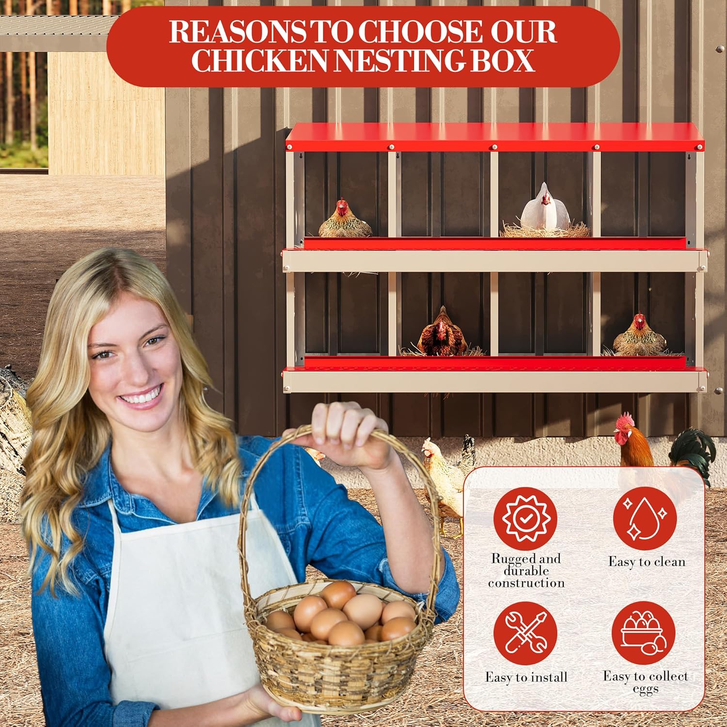 - Easy-Clean Design Saves You Time: Nesting box's removable dividers and wipeable surfaces make cleaning quick and simple, so you spend less time scrubbing and more time enjoying fresh eggs with your kids