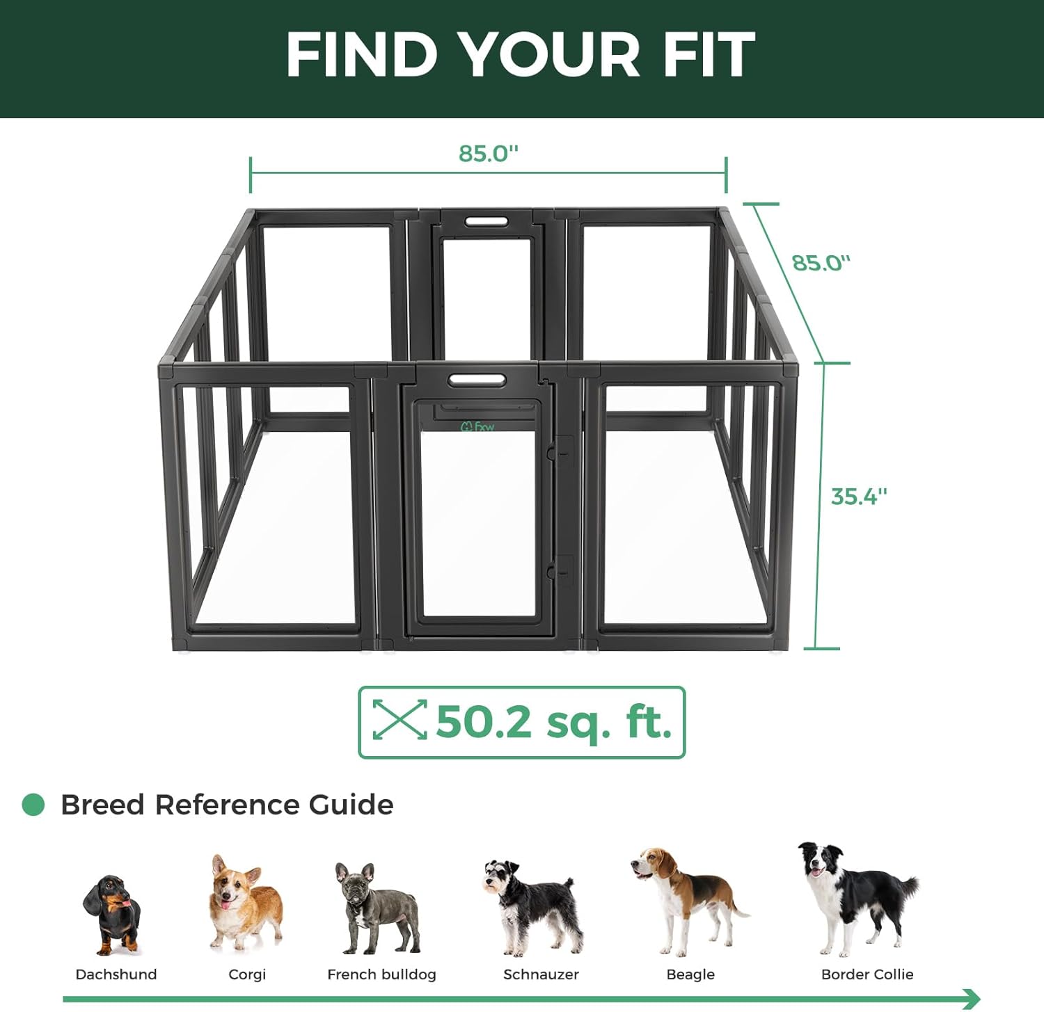 - Escape-Free, Safe Play: Transparent and seamless panels create a secure playpen to keep energetic dogs safely inside, preventing them from climbing out or getting their paws stuck in gaps.
