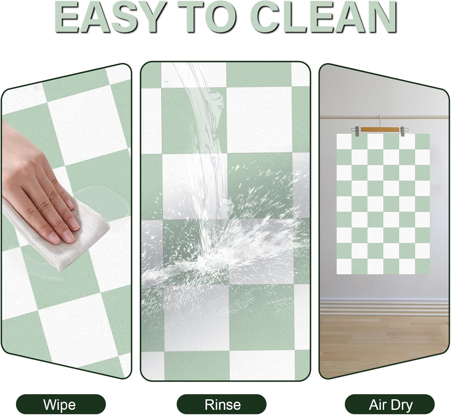 Cat Food Mat - 12"x 20" Cat Dog Mats for Food and Water Bowl, Checkered Pet Placemat Feeding Mat, Non-Slip Under Pet Bowls Mats for Messy Drinkers, Green & White