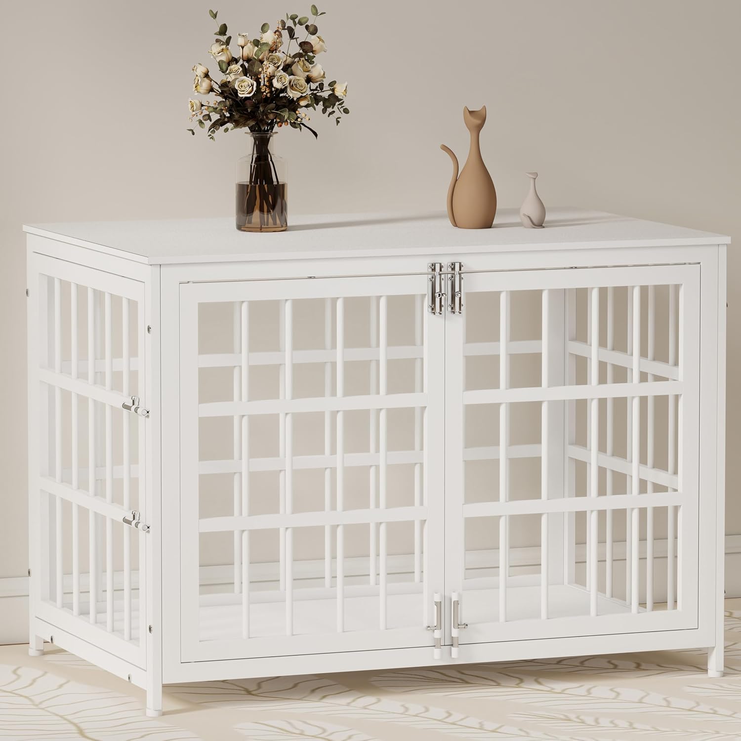 - Durable & Chew-Resistant Build: Constructed from thick steel tubes and premium wood, this crate withstands chewing and wear. Its solid frame provides long-term reliability and a secure resting spot for your dog.