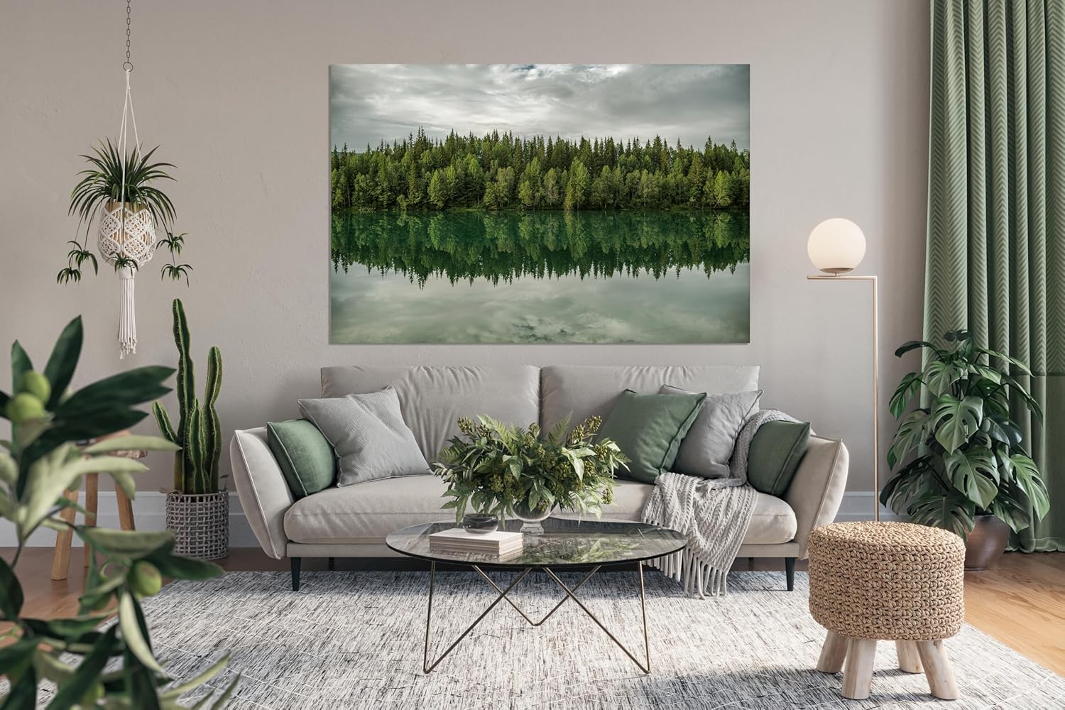 Nature Wall Art Prints - Ocean Forest Mountain Lake Canvas Landscapes - Small to Extra Large Living Room Bedroom Kitchen Bathroom Décor (Forest Reflection, 16L" x 24W")