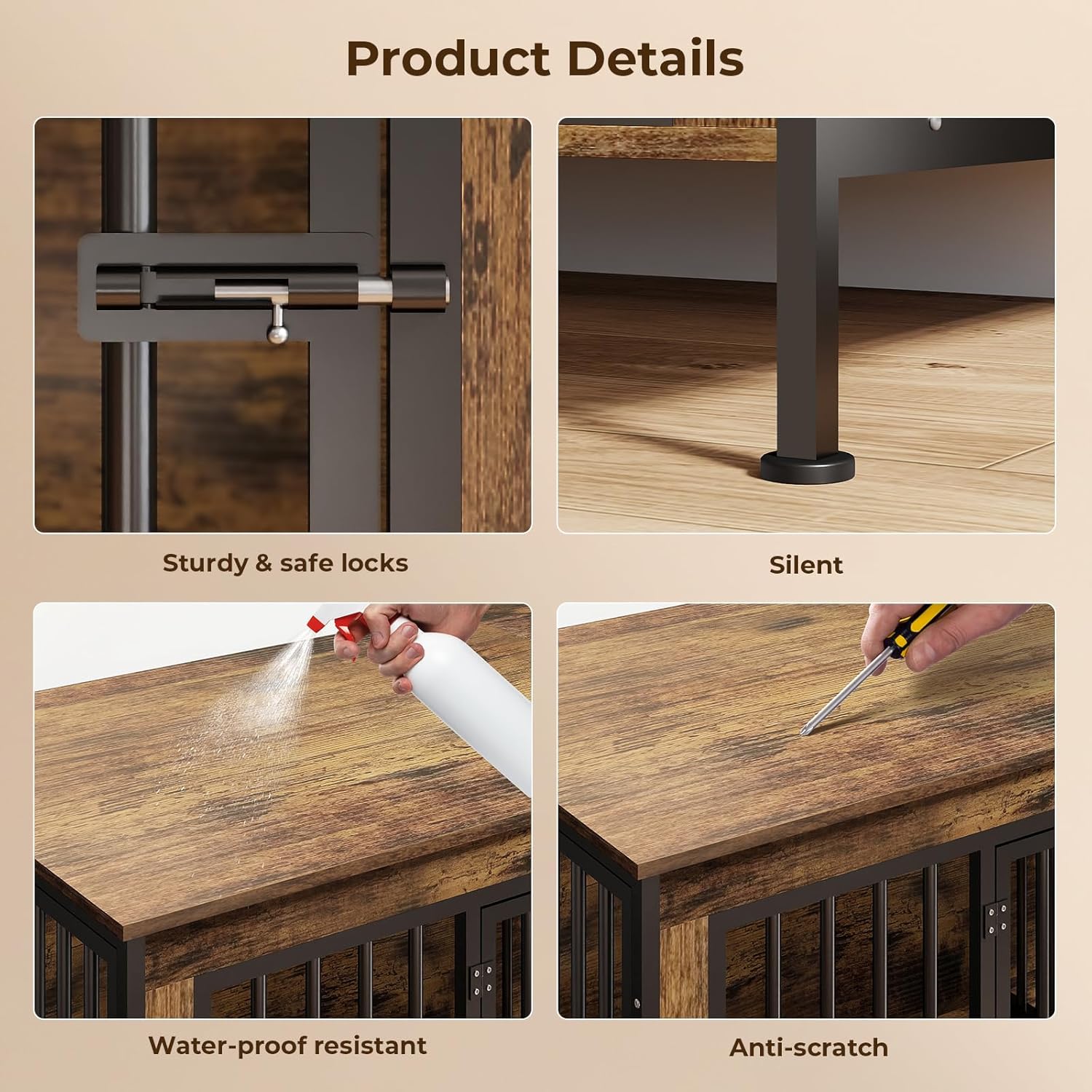 - Stylish & Multi-Functional:This indoor dog crate doubles as furniture with rustic wood grain and clean lines, fitting perfectly into your living room, bedroom, or entryway. It can serve as a TV stand, side table, or decorative piece while saving space.
