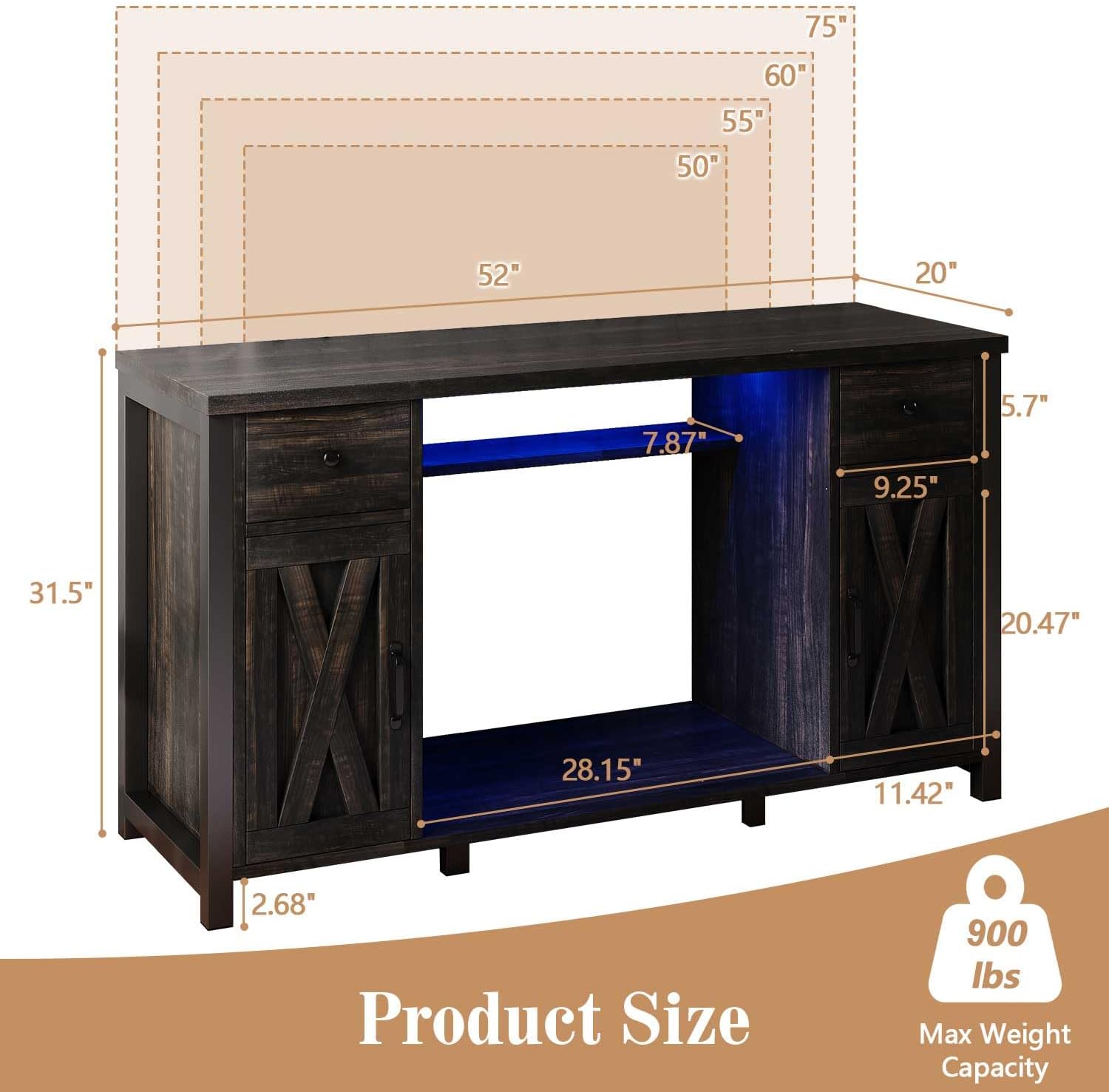 - Farmhouse Style and LED Lights: This aquarium stand is equipped with RGB LED lights, you can control the light color and flashing mode through the remote control, adding visual appeal and creating a unique atmosphere. The barn door design highlights the farmhouse style, making this fish tank stand a decorative highlight in your home
