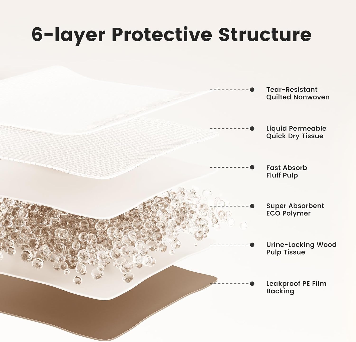 - Superior Absorption, Peace of Mind: Featuring a 6-layer thickened core pad, this dog pads extra large greatly enhances the water absorption capacity. The reinforced heavy-duty PE waterproof membrane on the back resists tearing while rapidly absorbing and locking in large volumes of liquid. The puppy pads xl effectively protects your floors or carpets, letting you sleep soundly with these reliable extra large pee pads for dogs.