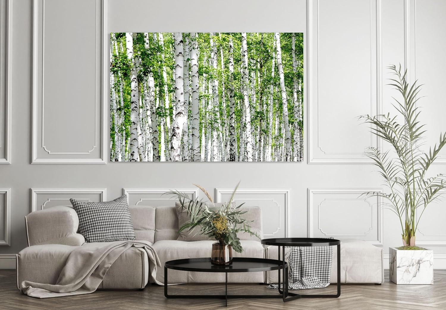 Nature Wall Art Prints - Ocean Forest Mountain Lake Canvas Landscapes - Small to Extra Large Living Room Bedroom Kitchen Bathroom Décor (Green Brich Trees, 16L" x 24W")