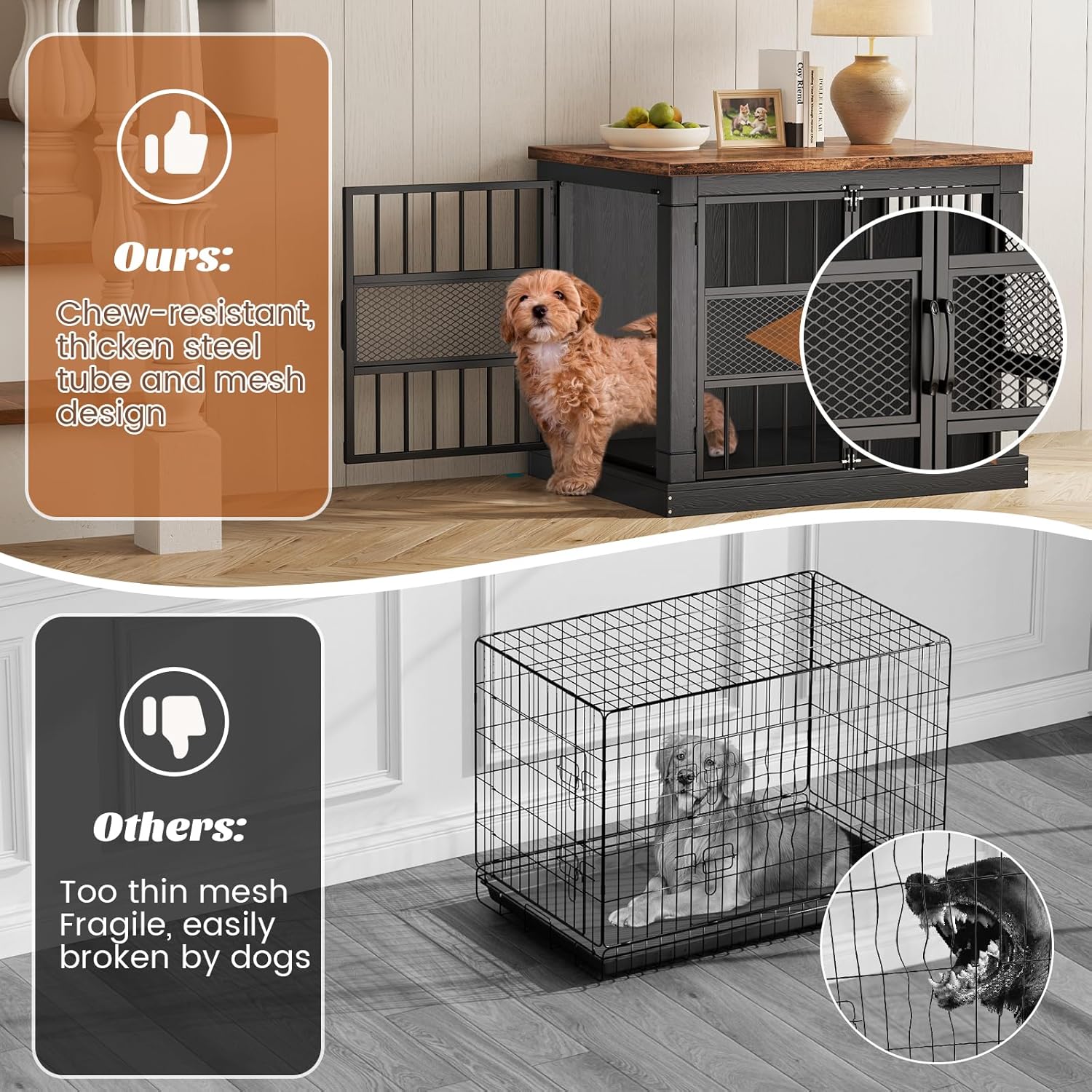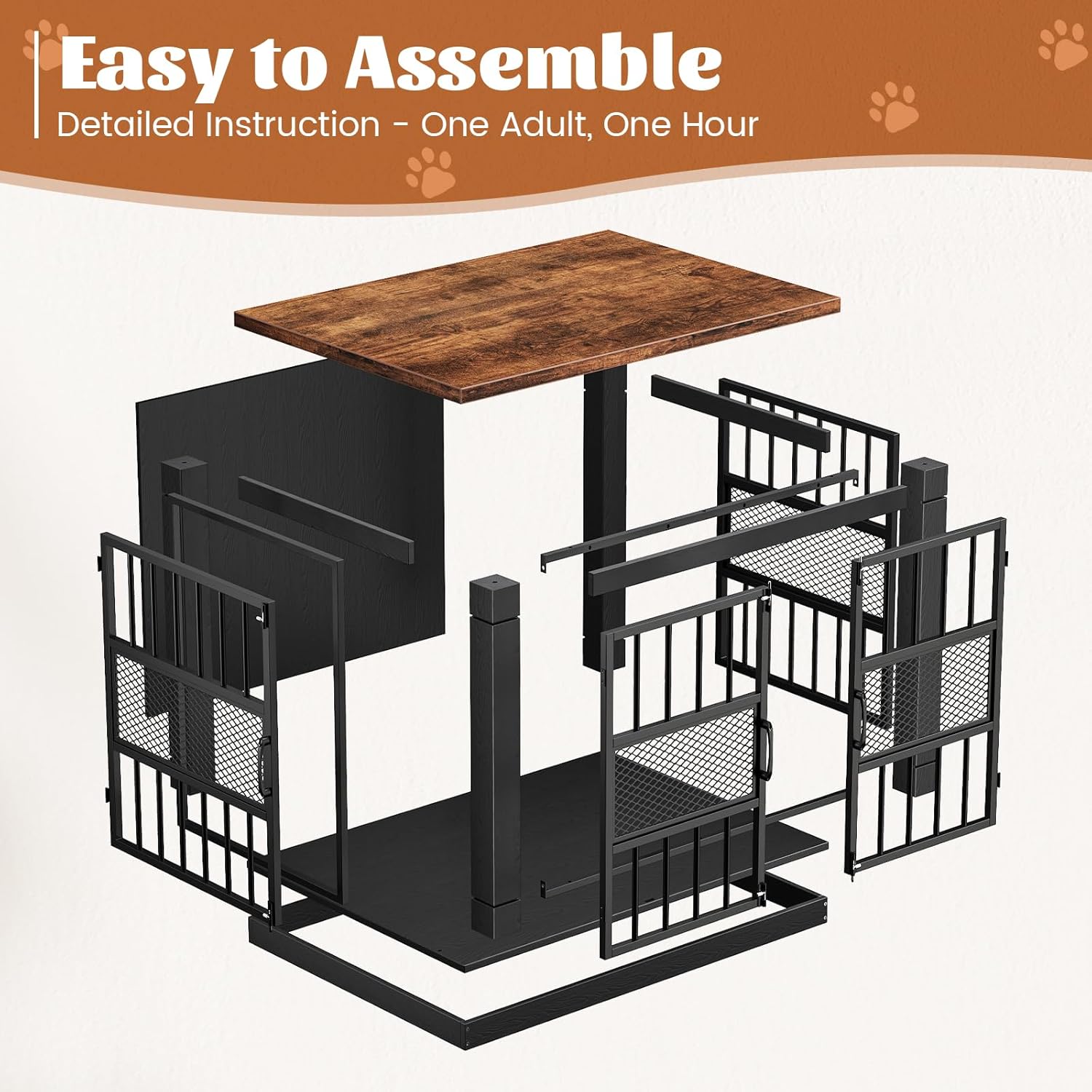 - Durable & Easy to Clean: Crafted with a sturdy wooden surface and an easy-to-clean interior bottom, this XL dog crate ensures durability while making maintenance hassle-free—no more worries about pet messes